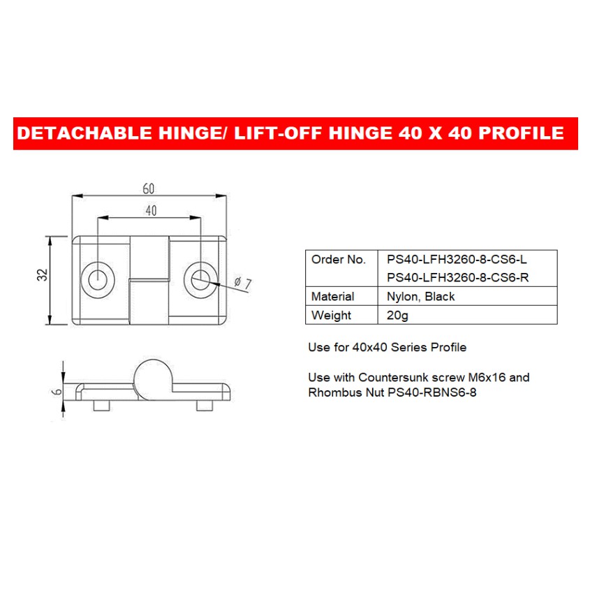 Nylon Detachable Hinge/ Lift-Off Hinge for 4040 Profile
