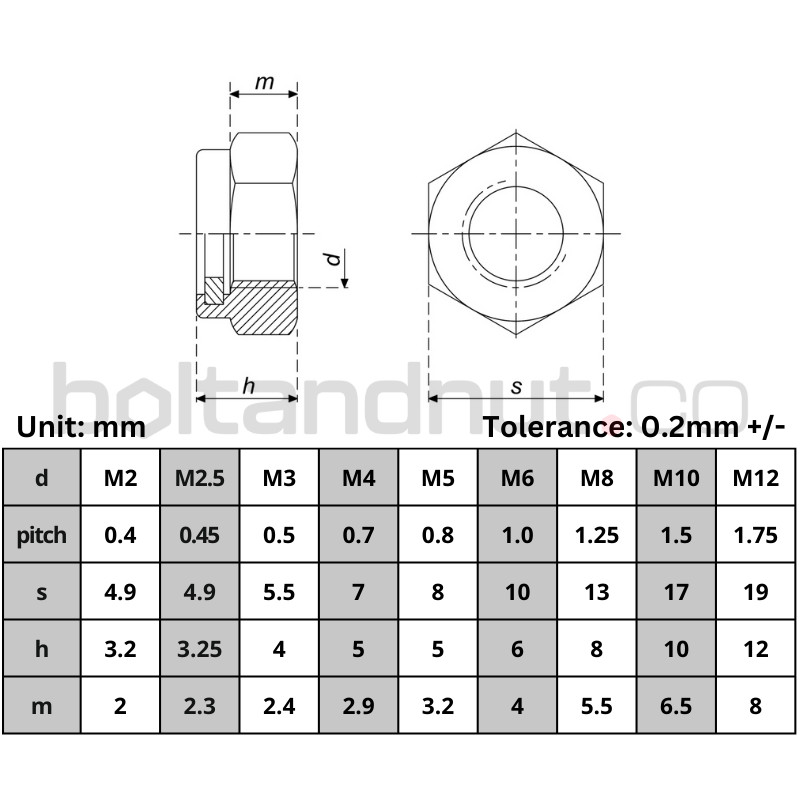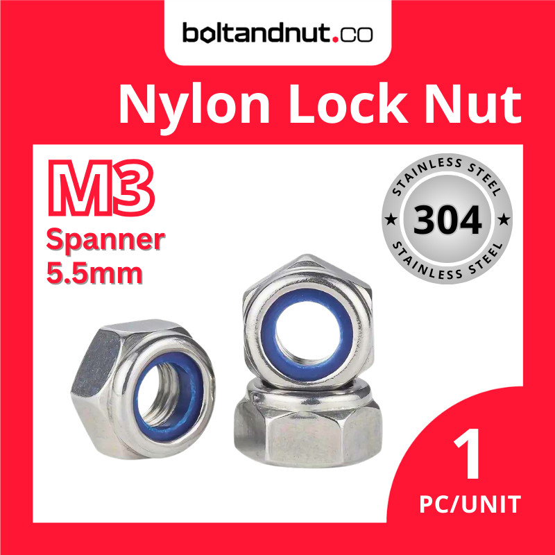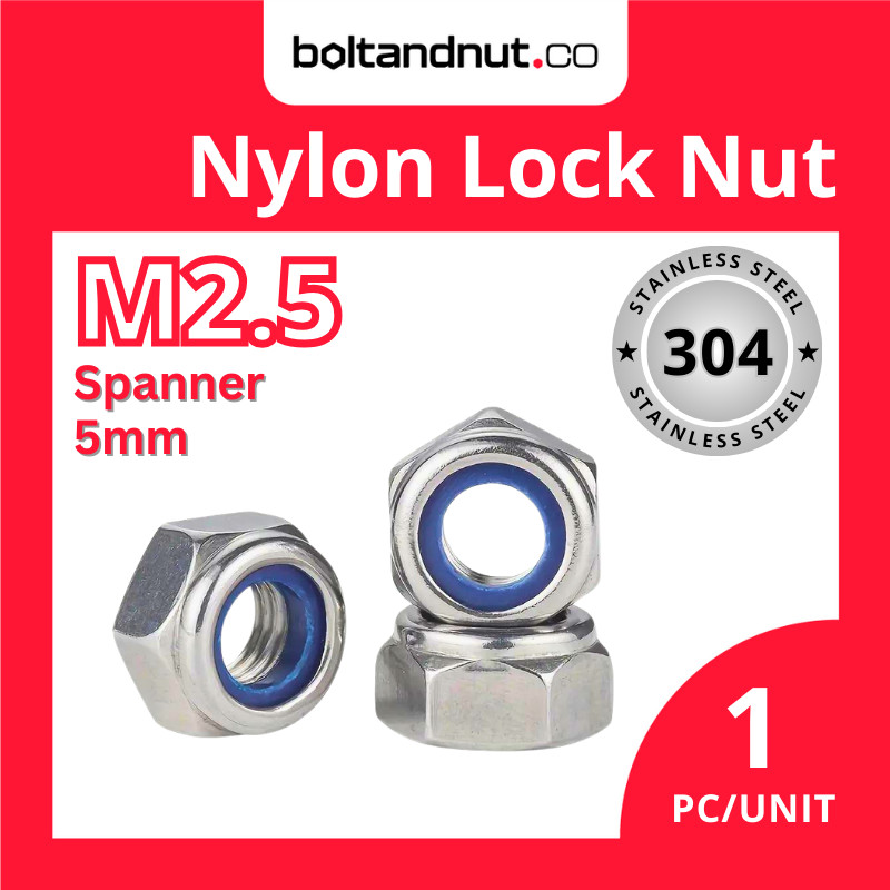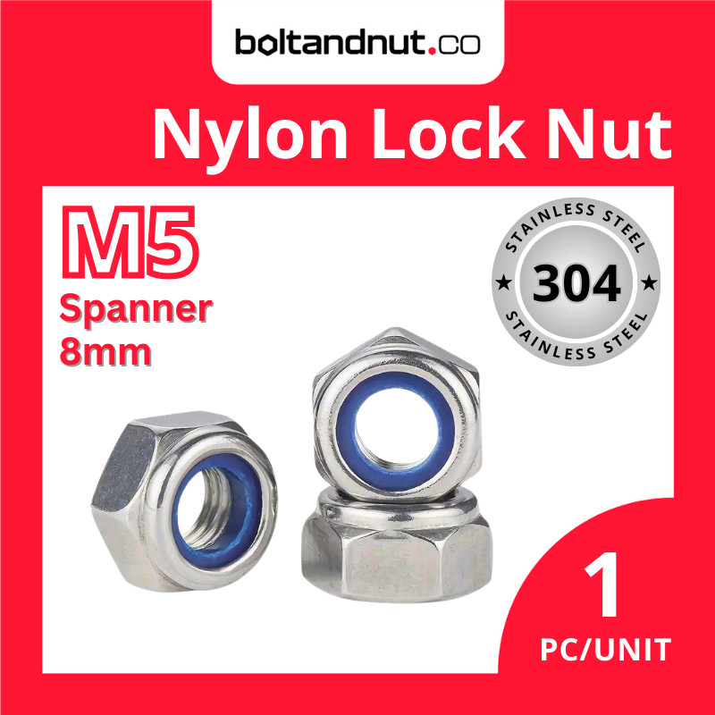Nylon Lock Nut DIN985 | SUS 304 Stainless Steel Grade A2-70 | M2 M2.5 M3 M4 M5 M6 M8 M10 M12 | Nyloc Nut Hexagon Locknut