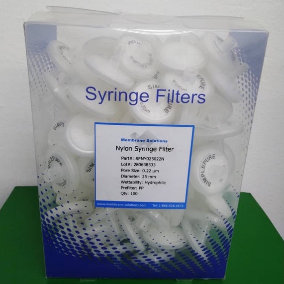Nylon Syringe Filter Pore Size 0.22um, 25mm (100's/pack)