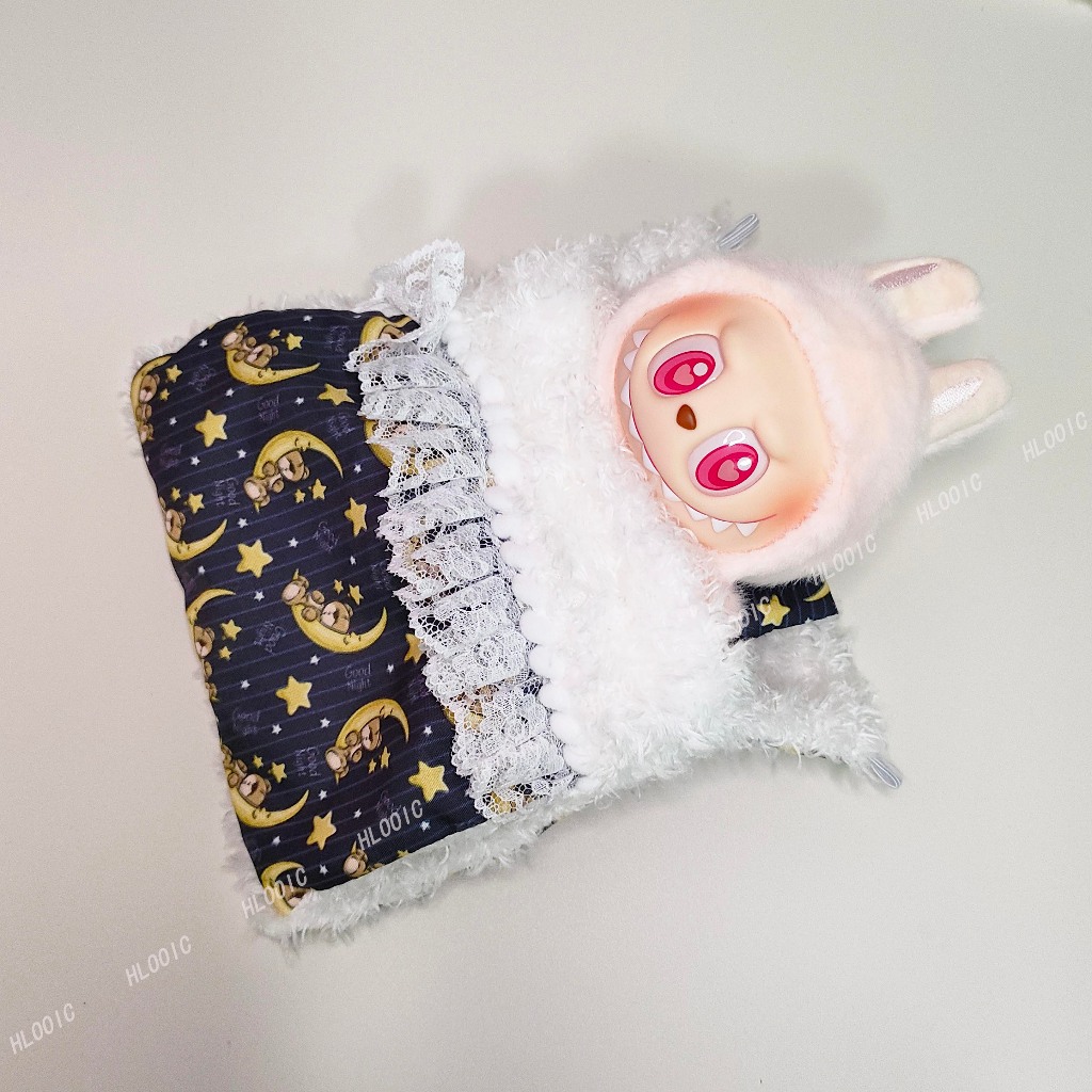 OB11 Bed Labubu Bed for 17cm Labubu Macaron Upset DUCK and 1/12 BJD GSC Molly Obitsu11 Doll Sleeping Bag Contain 2 Pillows