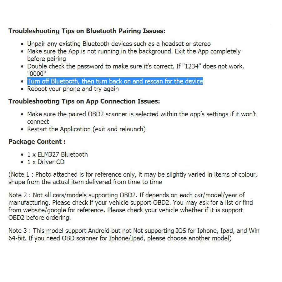 OBD2 Car Scanner Bluetooth ELM-327 Android Compatible Torque