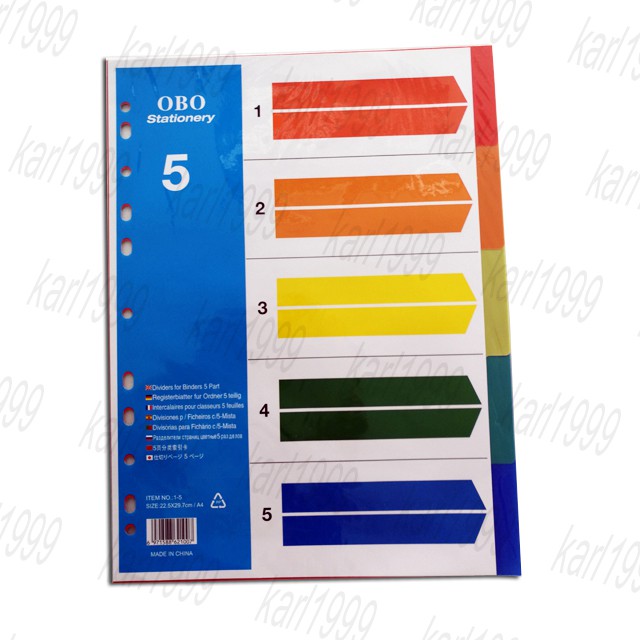 Pemisah Indeks A4 OBO – 5 Warna | OBO A4 Size Index Divider – 5 Colours Tab File Separator