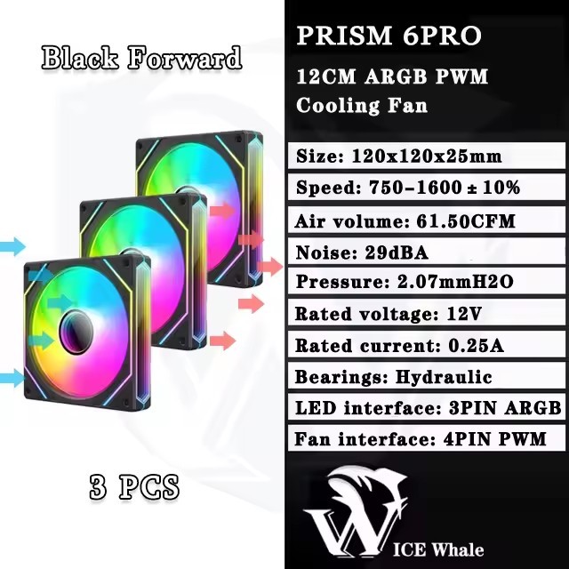 ICE Whale Prism 6PRO ARGB PC Case Fan 120mm 3-sided Infinite Mirror 5V 3PIN ARGB Motherboard Lighting Sync 4PIN PWM Silent Cooling Fan
