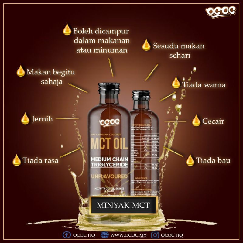 OCOC Pure MCT Oil Coconut Oil Unflavored Colorless Dr Rizal 250ml Minyak MCT C8 C10 终极能量助推器提升代谢