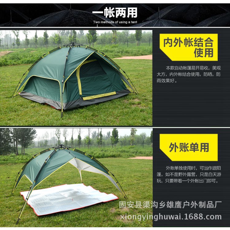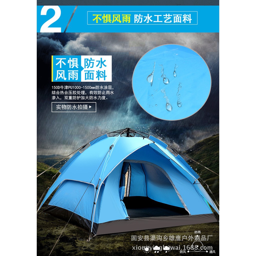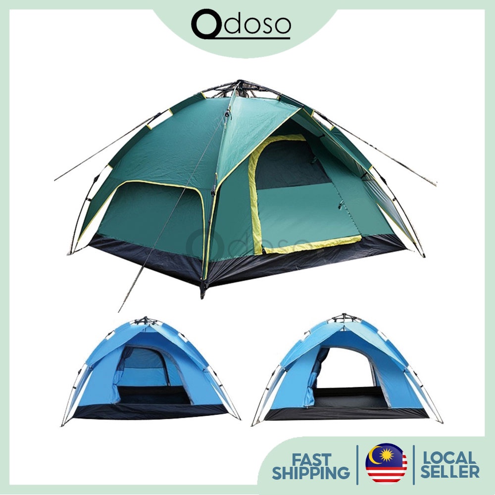 ODOSO 3-4 Persons Waterproof Dome Automatic Instant Rapid Tent Camp Beach Tent for Camping, Hiking and Outing