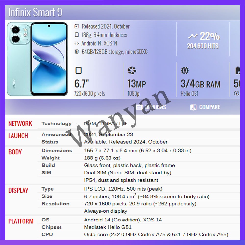 OEM For Display Infinix Smart 9 X6532 LCD Touch Screen Replacement