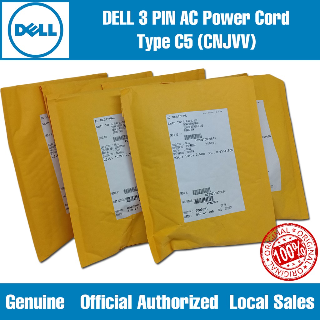 OFFICIAL DELL Cable Laptop Dell Power Cable 3 Pin Laptop Power Cord C5 Notebook CPA-CNJVV