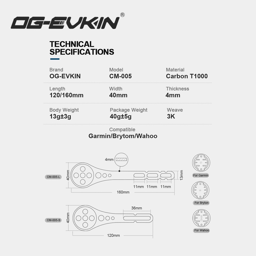 OG-EVKIN Carbon Bicycle Computer Handlebar Bike Mount 3k for Garmi/Bryton/Wahoo Road/MTB