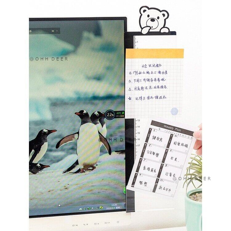 OHHDEER Cute Bear Computer Monitor Memo Board With Phone Holder Computer Screen Side Sticky Notes Holder Message Board