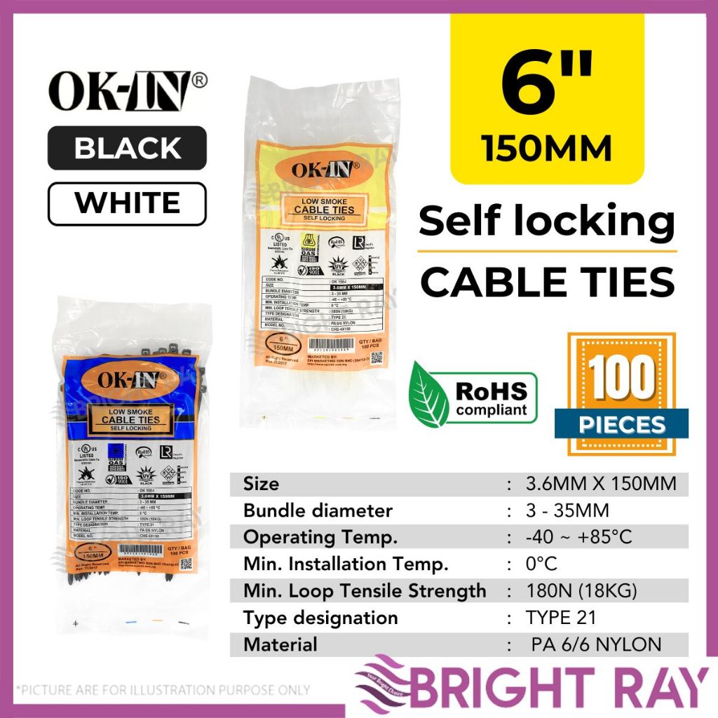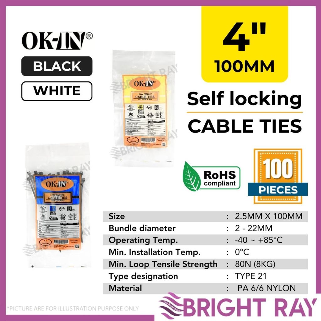 OK-IN 100PCS Multipurpose Nylon Cable Tie Cable Management Wayar Cable Tight Kabel Wire Organizer Cable Tie Zip Tie