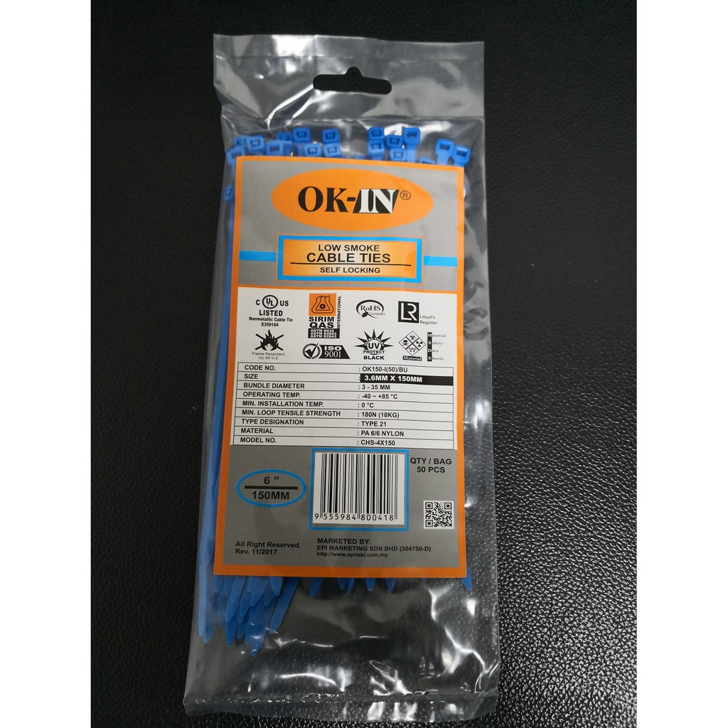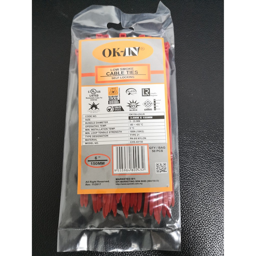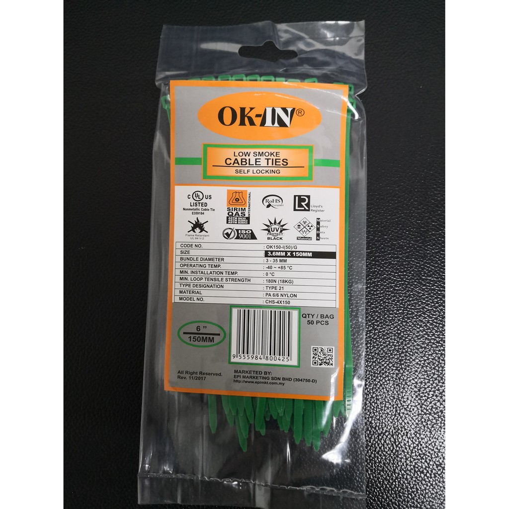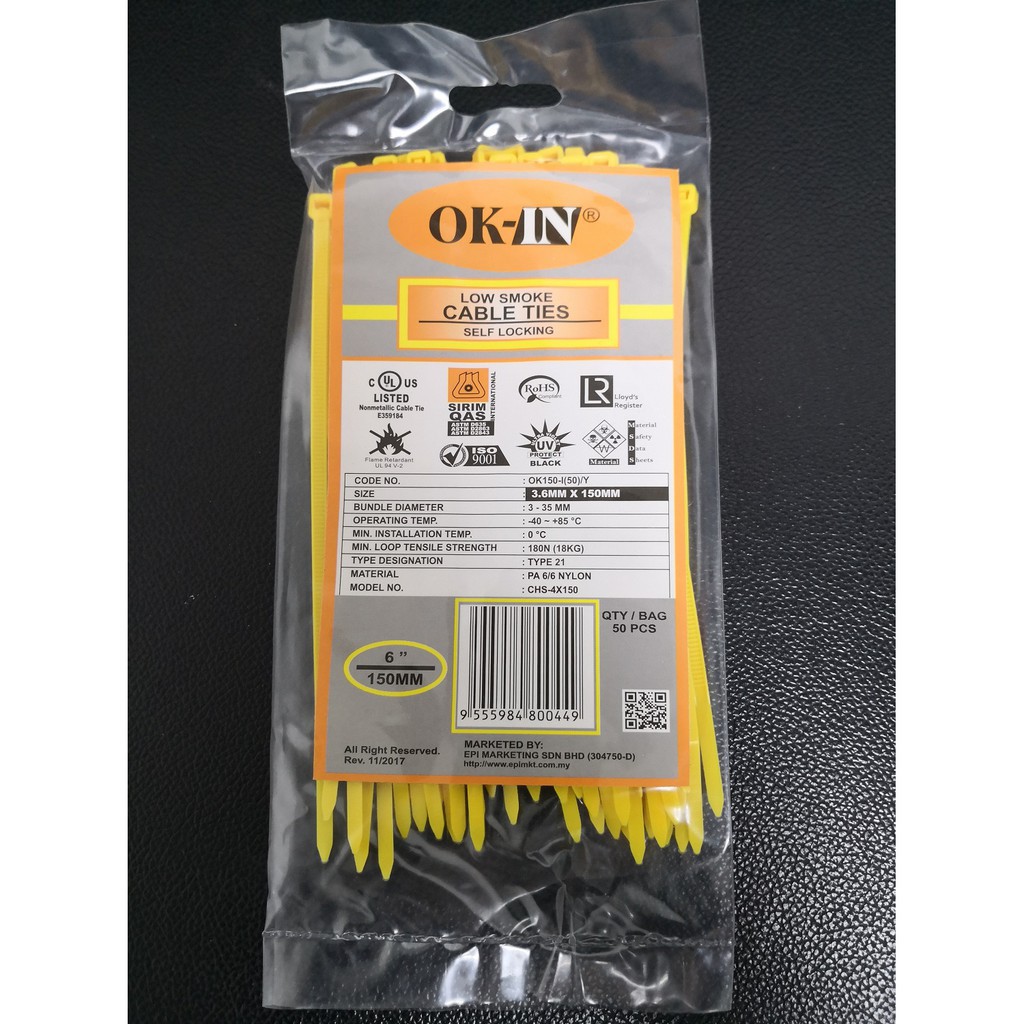 OK-IN Nylon Cable Tie 6" / 150MM X 3.6MM Cable Ties 6 Inch Pengikat Kabel 50 PCS / PKT
