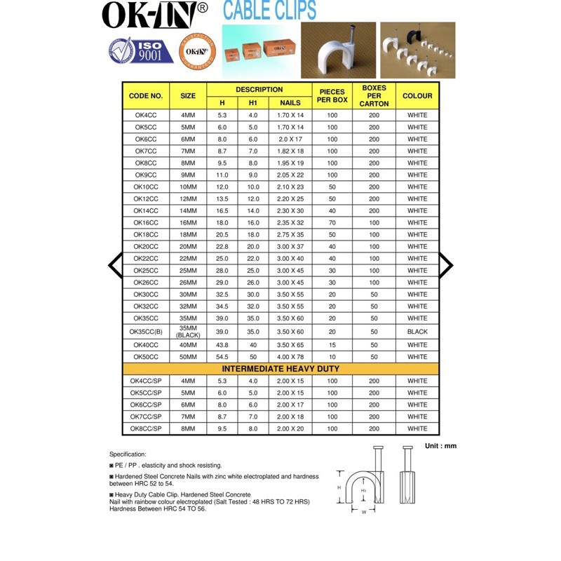 OK-IN PVC Cable Clip U Clip/Wall Wire Clips(White)