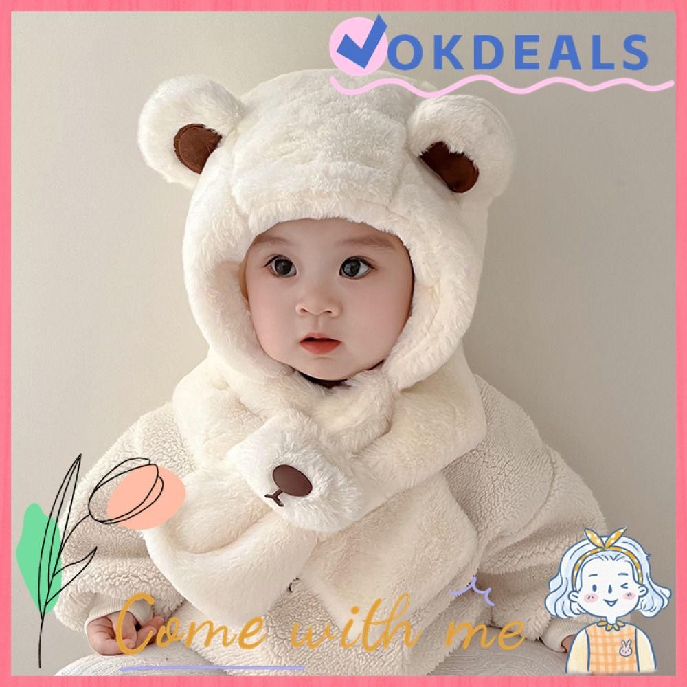 OKDSHOP Winter Baby Hat Scarf, One-Piece Plush Kids Hat Hooded Scarf, Windproof Thick Warm Neck Protection Infant Beanies Cap