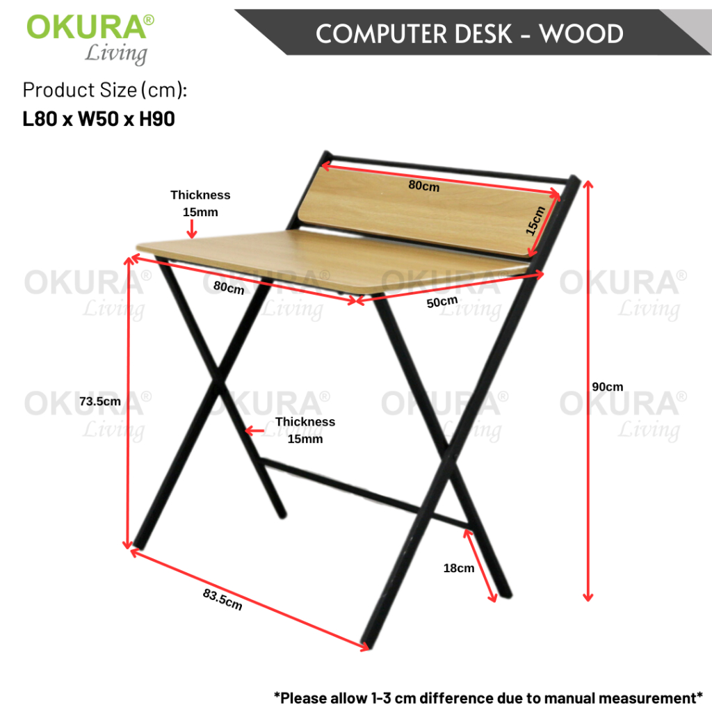 OKURA Foldable Computer Desk with Shelf Study Desk Meja Lipat Writing Desk Portable study table Meja Komputer Serbaguna