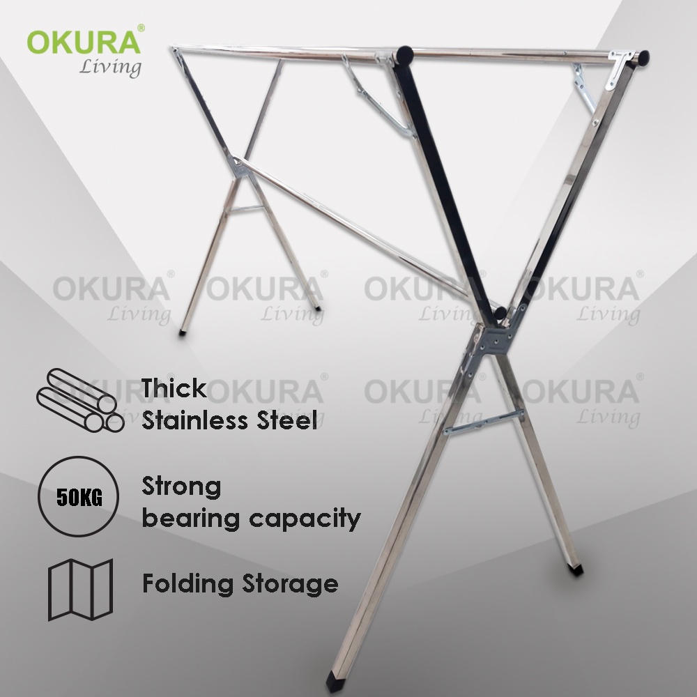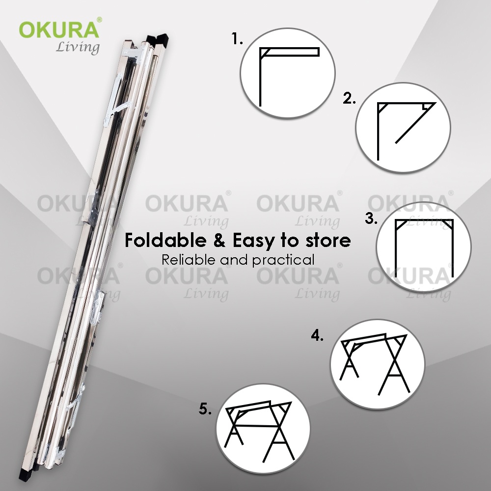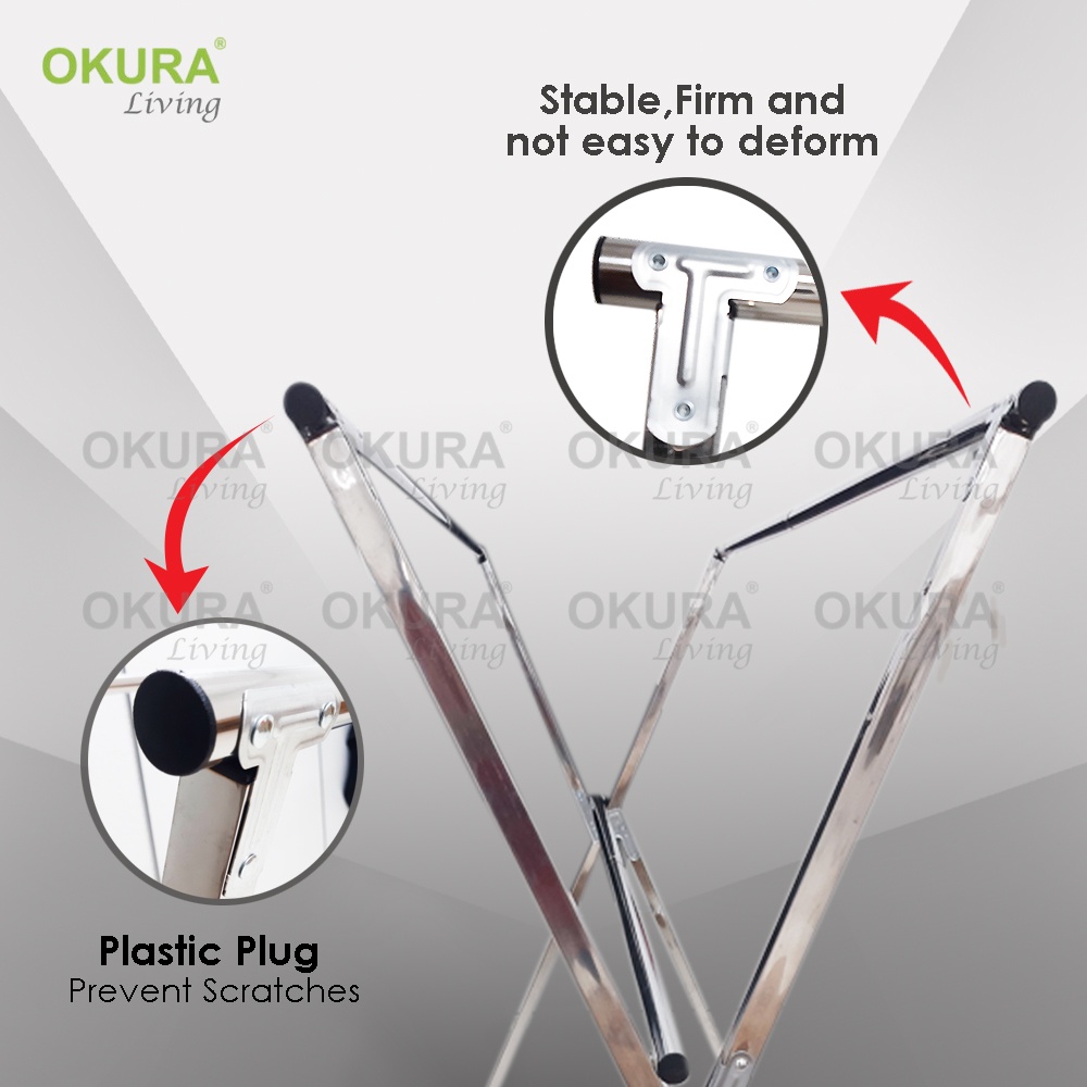 OKURA Foldable/Extendable Stainless Steel Telescope 3 Pole Cloth Hanger / Cloth Drying Rack / Penyidai / Ampaian Baju