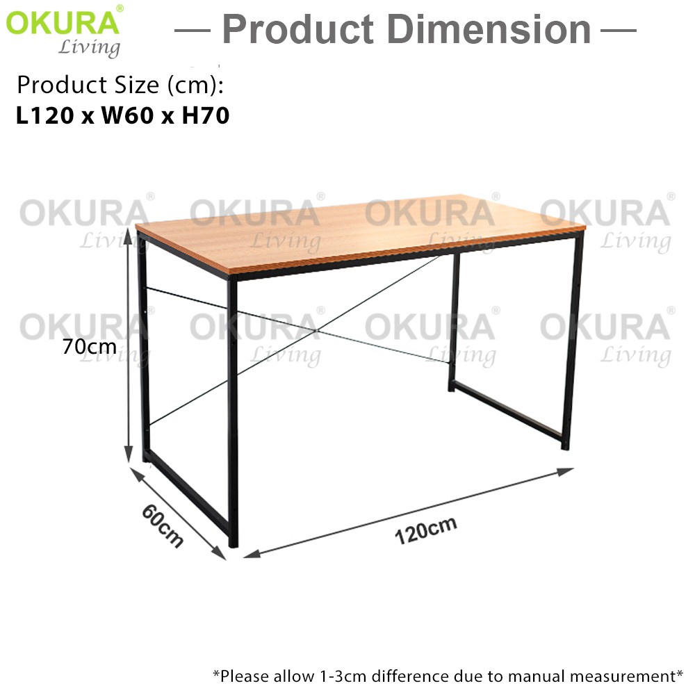OKURA Modern Home Office Table Writing Computer Table Desk Student Study Table Meja Tulis (120x60x70cm / 80x60x70cm)