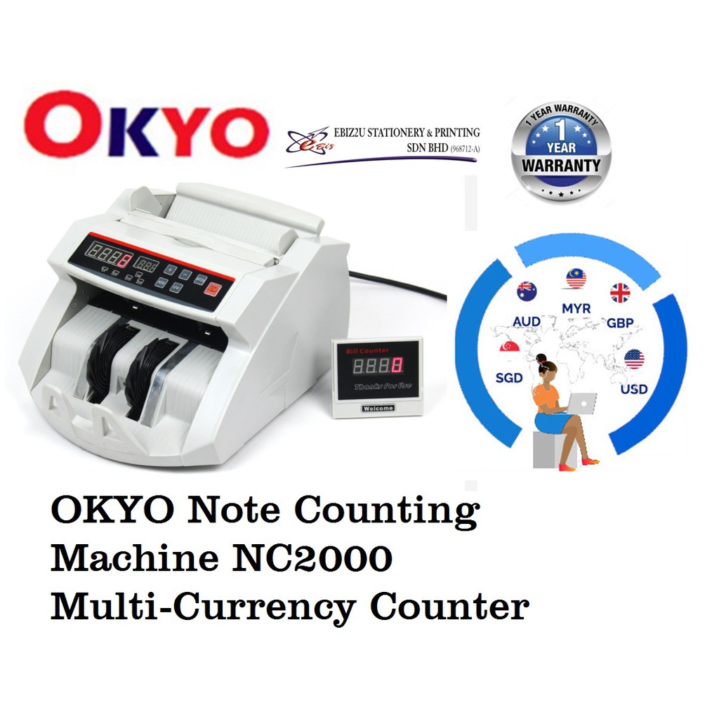 OKYO Note Counting Machine NC2000 Multi-Currency Counter (note counter machine, Banknote Counter