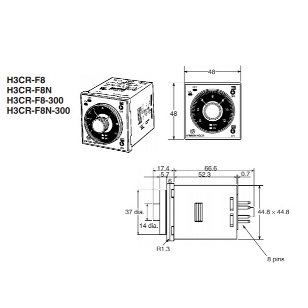 OMRON Timer H3CR-F8N 1.2S-300H 100-240 VAC/100-125 VDC