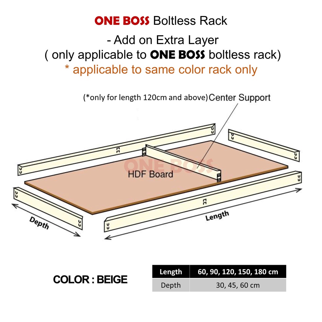 ONE BOSS Boltless Rack Add on Extra Level for Beige Color Boltless Rack