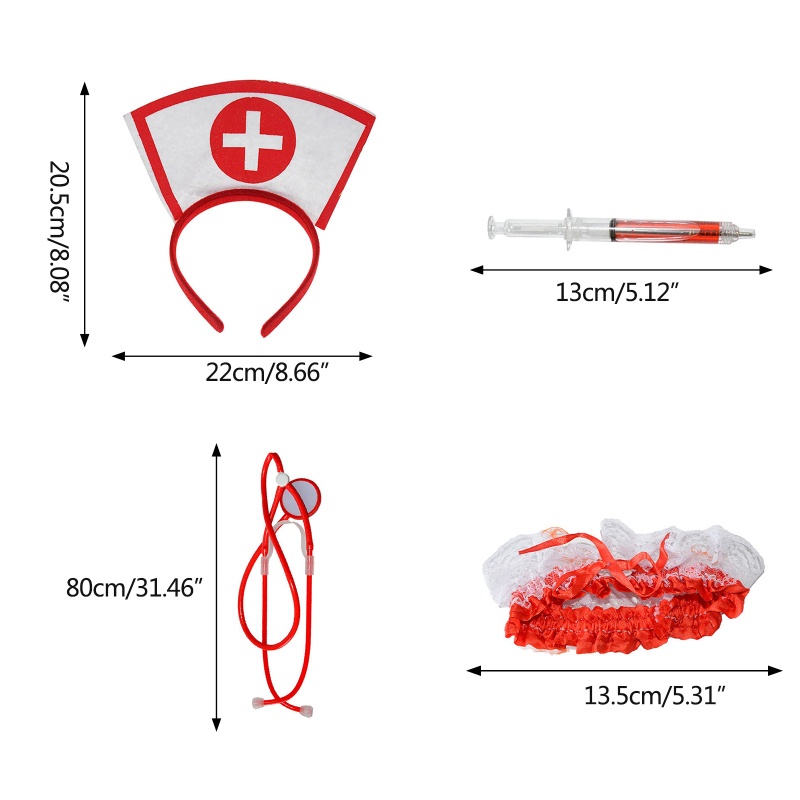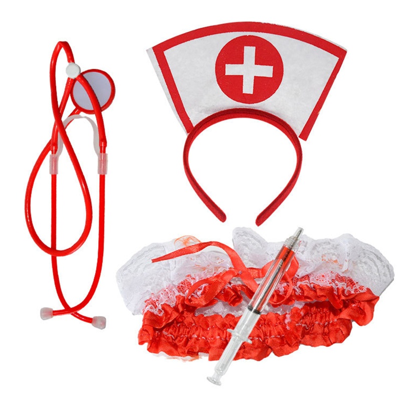 ONE Nurse Hat Shape Headband Stethoscope Pen Thigh Belt Cosplay Costume Headdress Halloween Birthday Party Chic Set