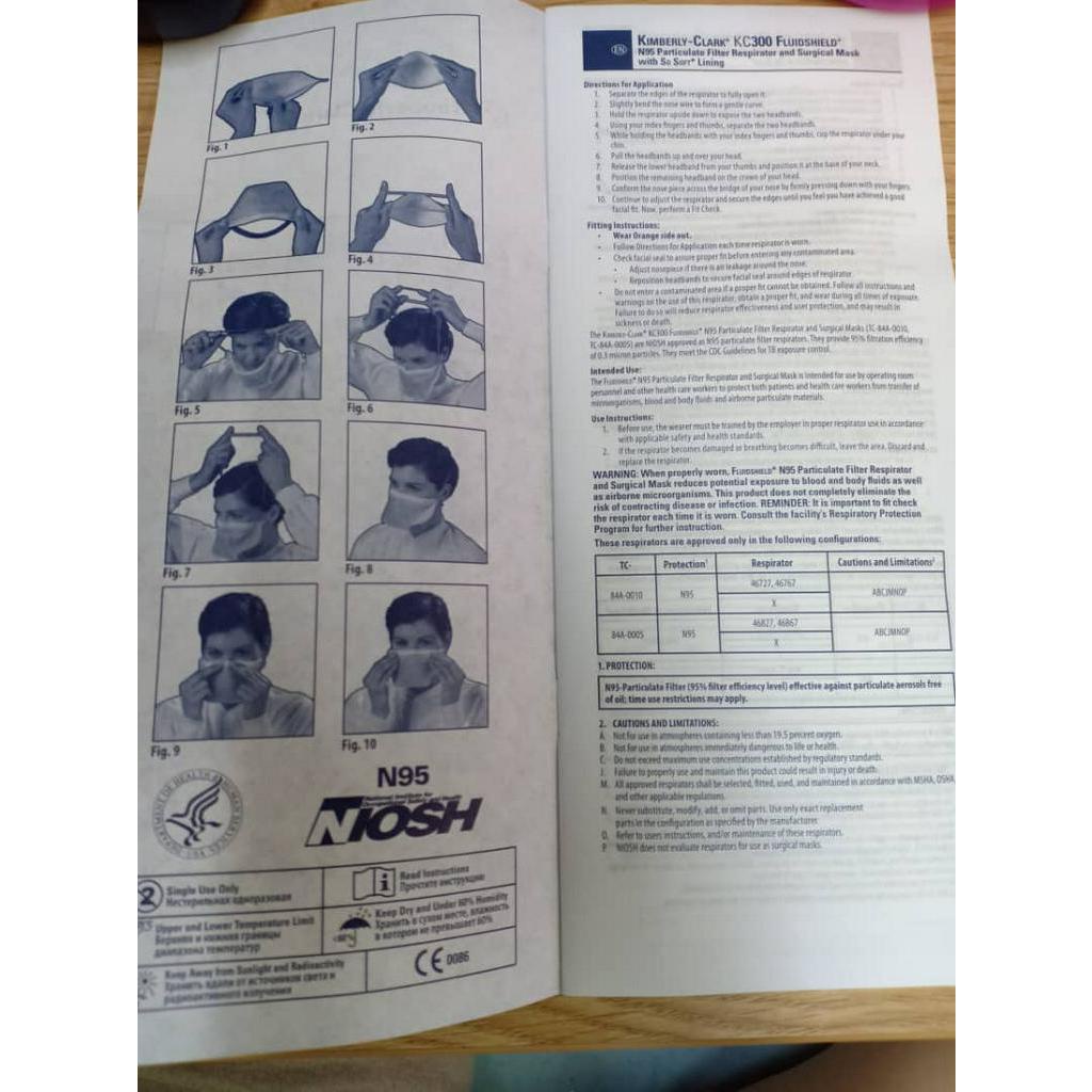 ONE piece Kimberley-Clark N95 mask KC300 Fluidsheild N95 Particulate Filter Respirator