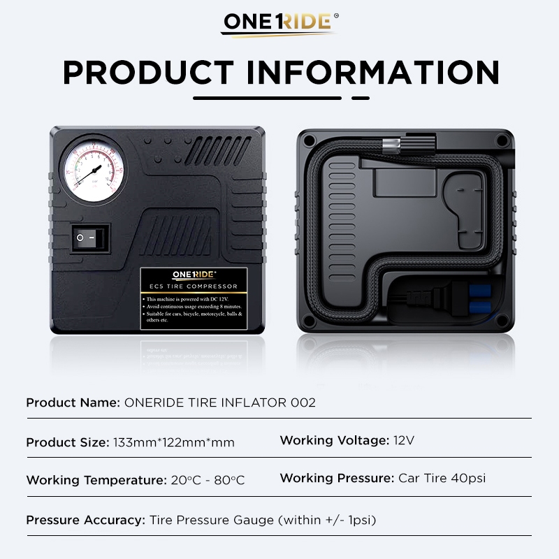 ONERIDE TI002 Tyre Pump Tire Inflator Portable Pam EC5 Air Compressor