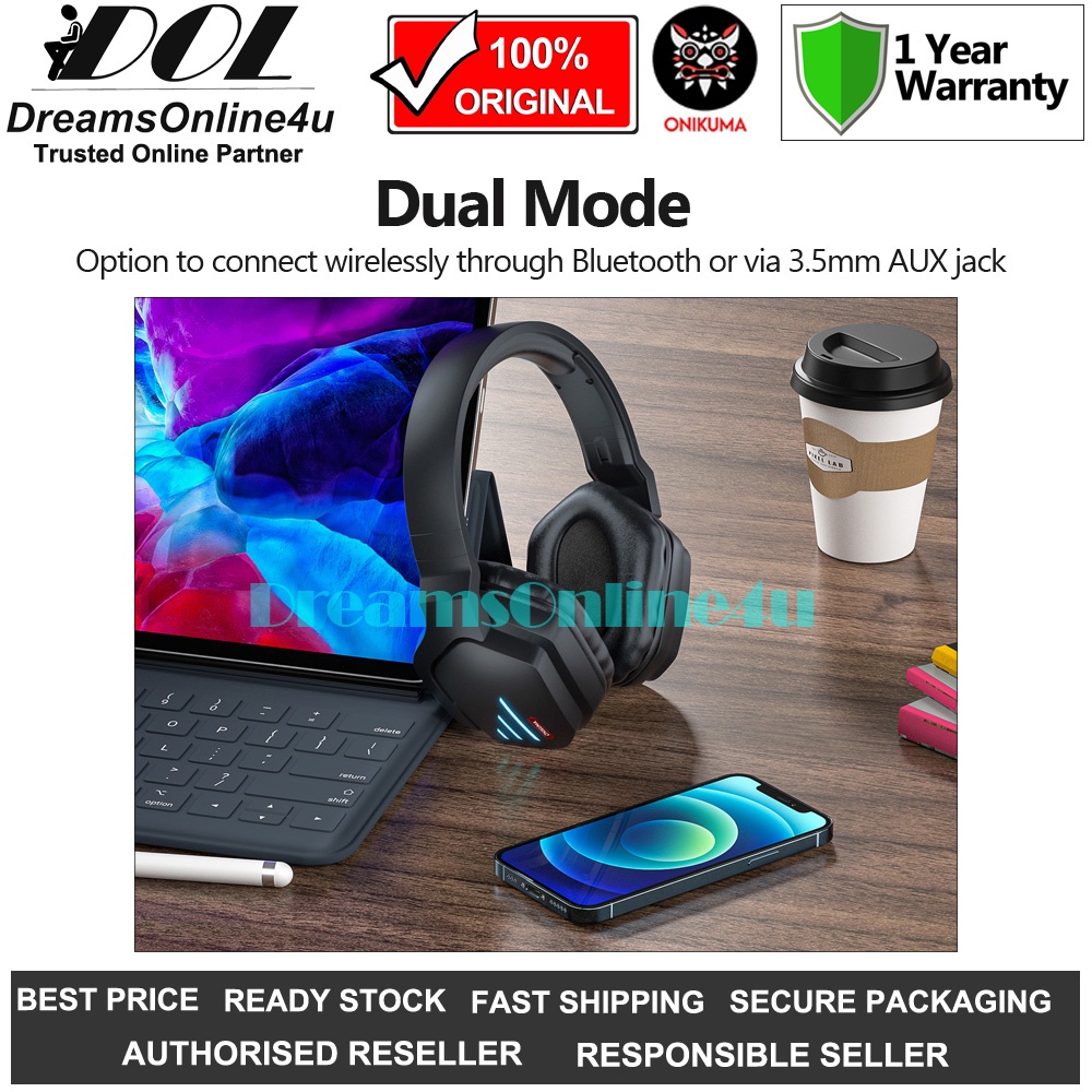 ONIKUMA B60 Bluetooth 5.0 Strong Bass Wireless RGB Professional Foldable Gaming Headset Microphone Mobile Phone