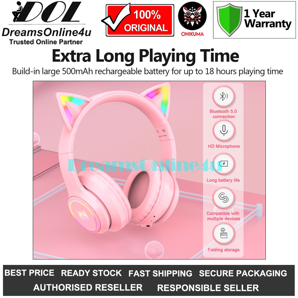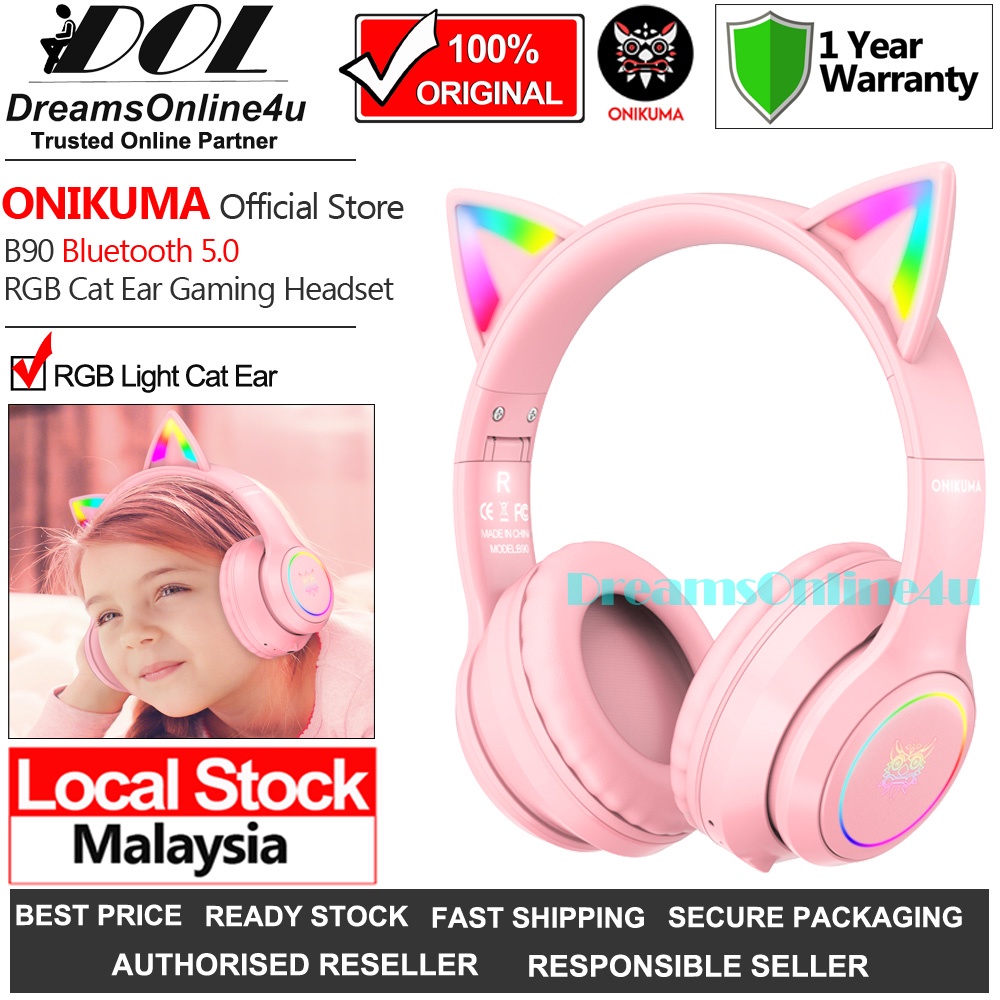ONIKUMA B90 Cutie RGB Cat Ear Bluetooth 5.0 Strong Bass Wireless Professional Gaming Headset Noise Reduction Microphone