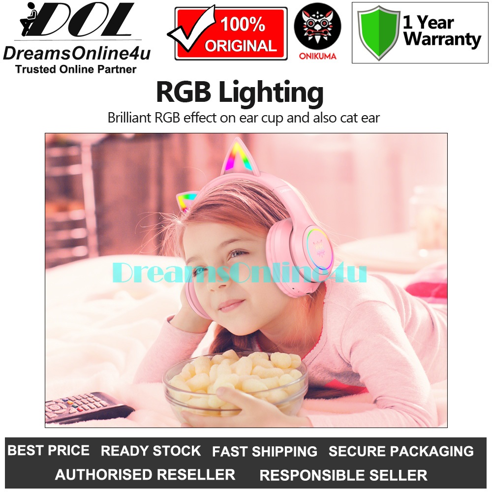 ONIKUMA B90 Cutie RGB Cat Ear Bluetooth 5.0 Wireless Professional Gaming Headset Noise Microphone