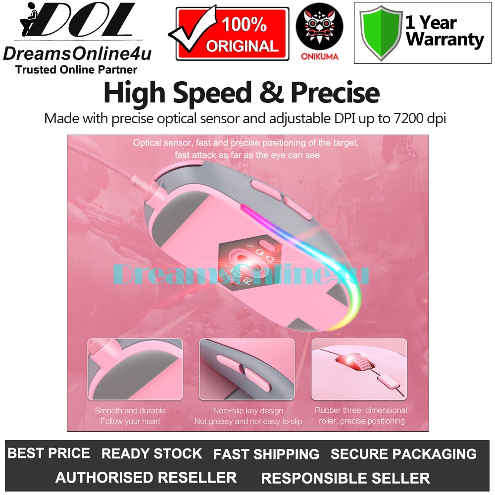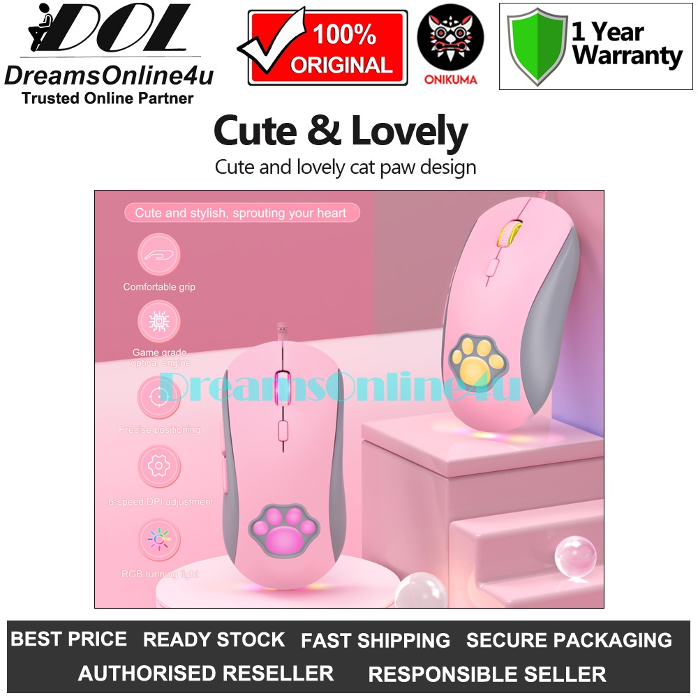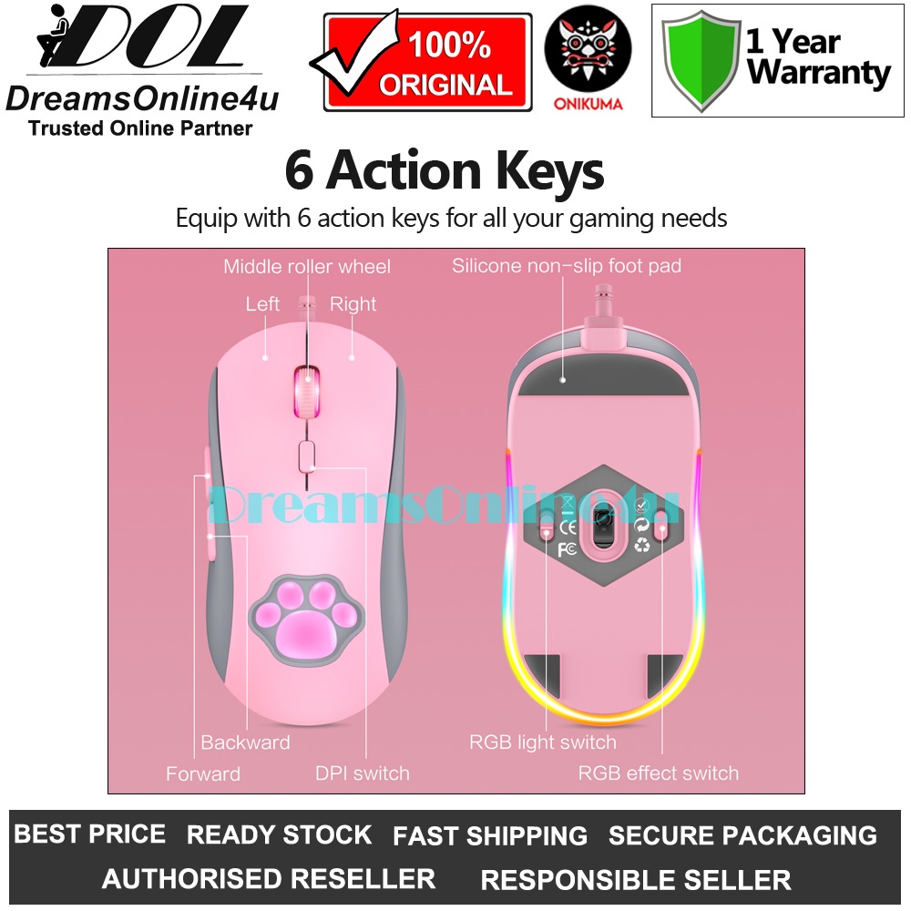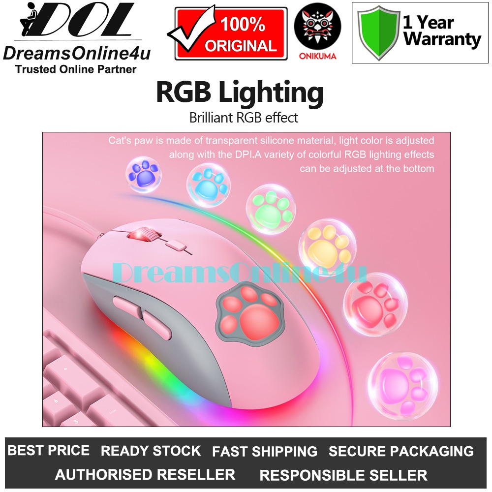 ONIKUMA CW918 Cute Lovely Cat Paw RGB Light Gaming Mouse 6 Action Button Keys 7200 DPI USB Corded
