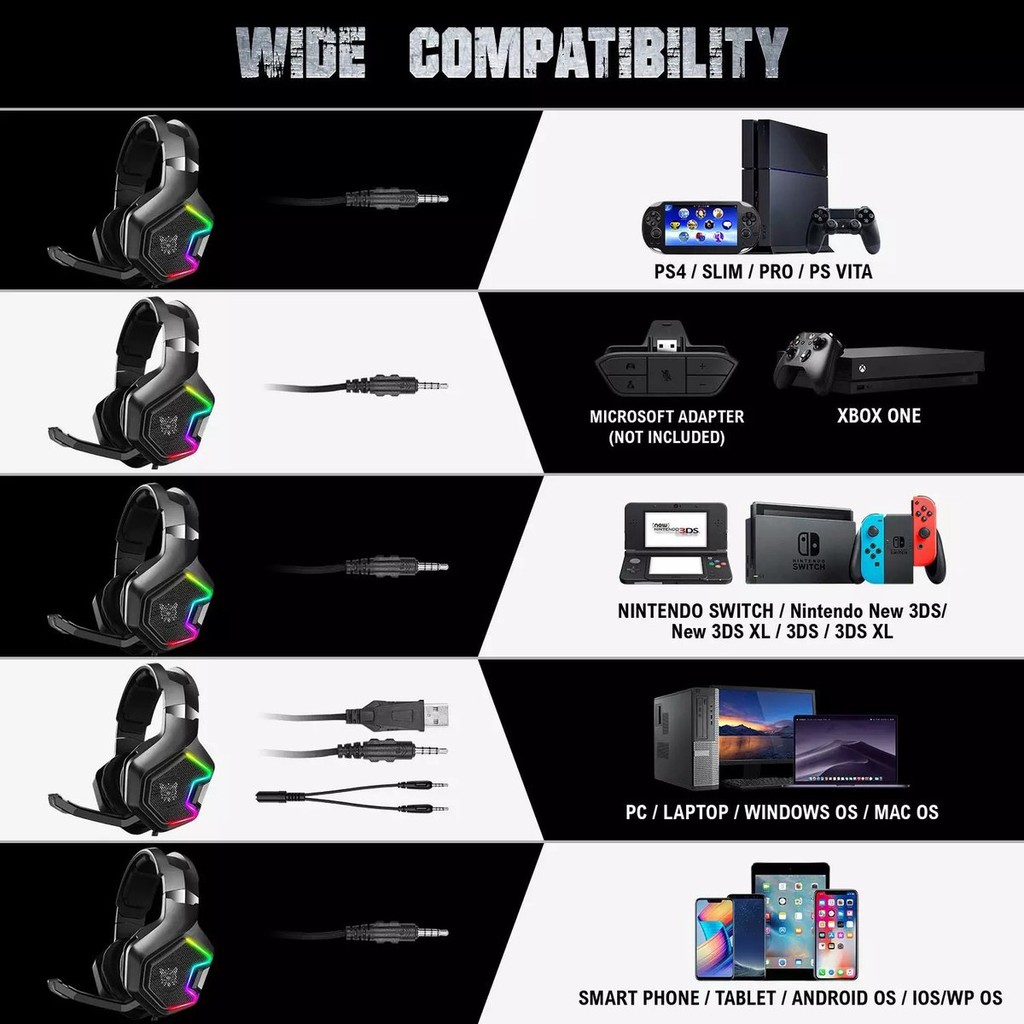 ONIKUMA K10 Pro 7.1 Surround Gaming Headset RGB LED Over-Ear Headphones with Omnidirectional Microphone K10 PRO