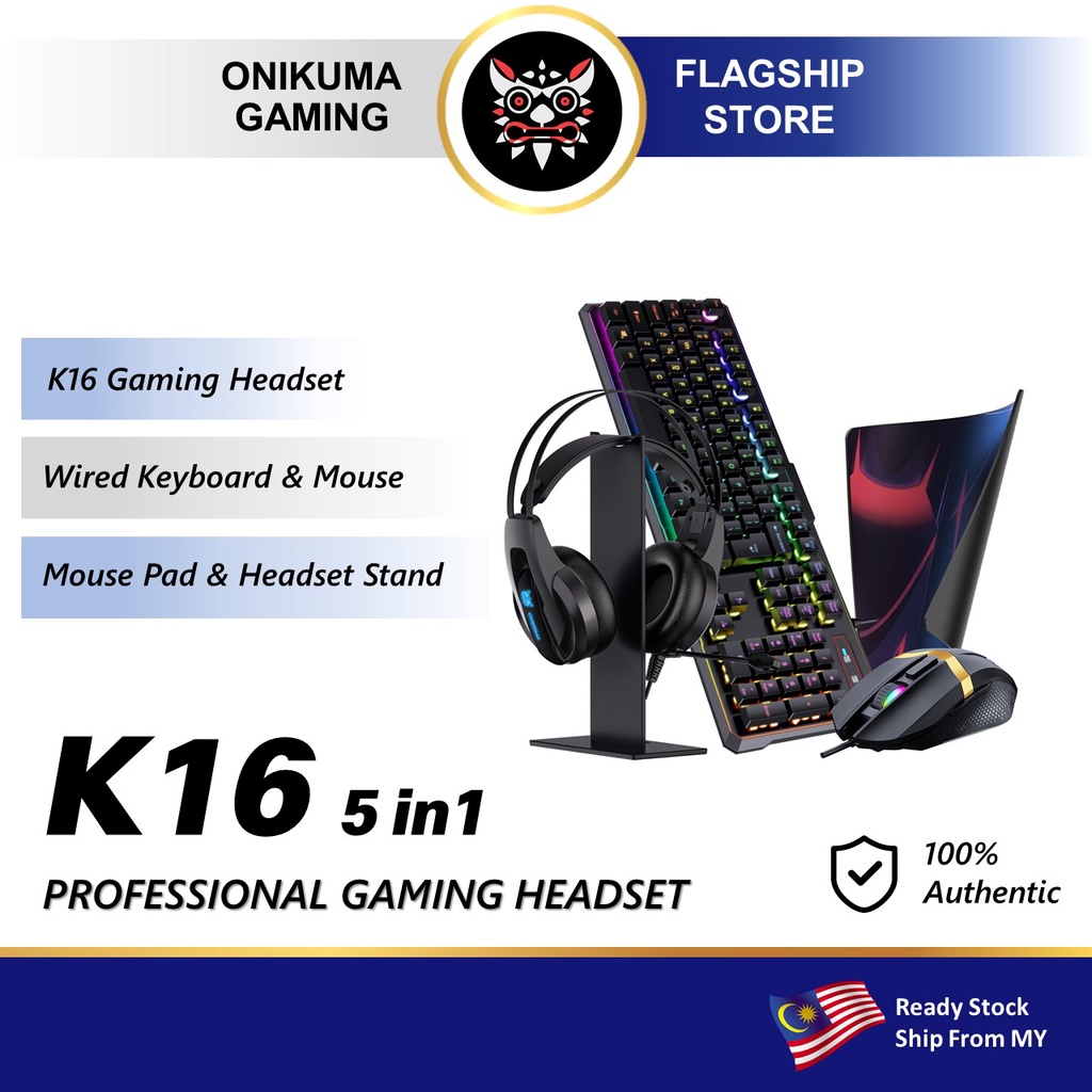 ONIKUMA K16 5 in 1 Combo Set Gaming Accessory with Gaming Headset Wired Mouse RGB Keyboard Headset Stand Mouse Pad