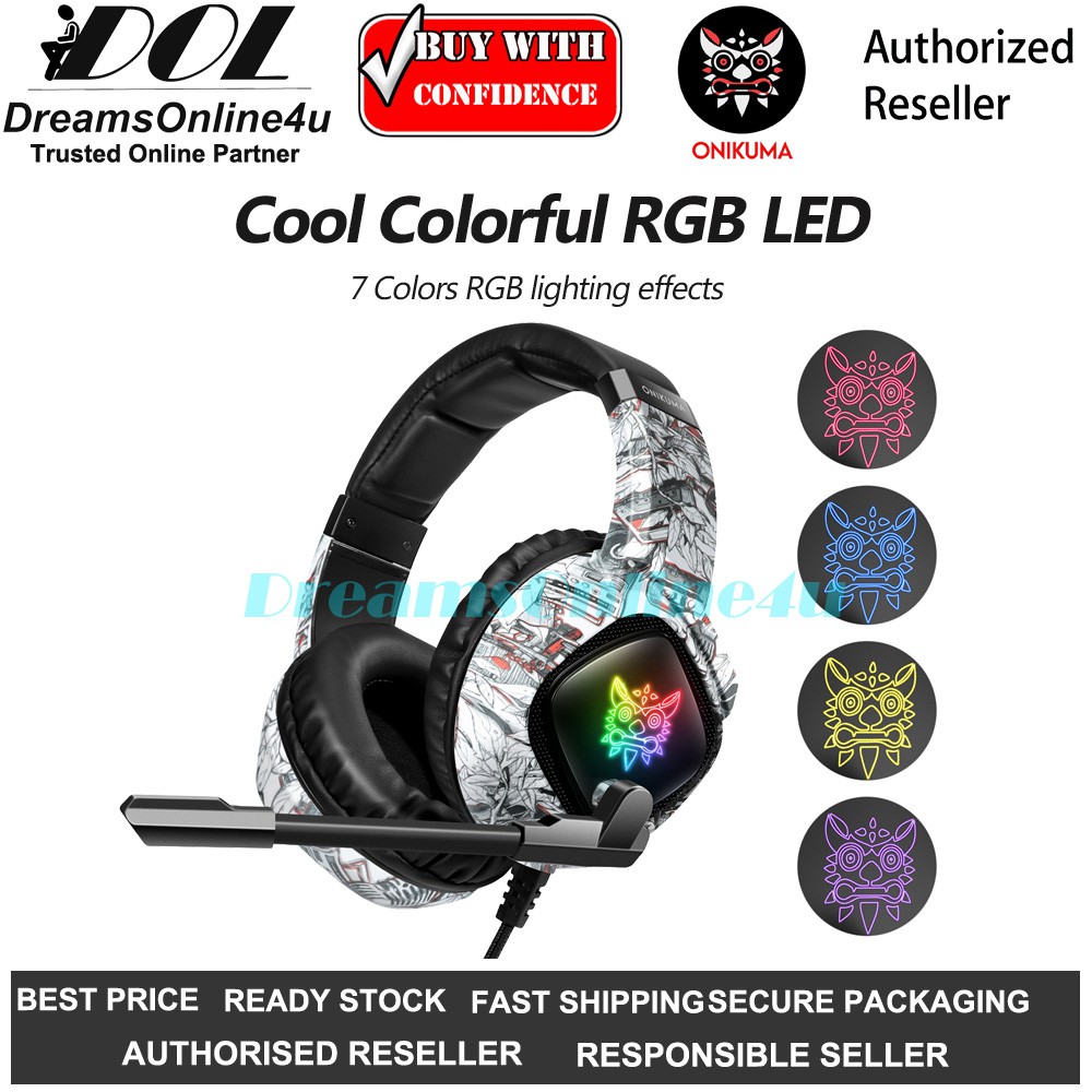 ONIKUMA K19 Camouflage RGB Full Oval Ear Cover Cushions Heavy Bass Stereo Ultimate Gaming Headphones with Microphone