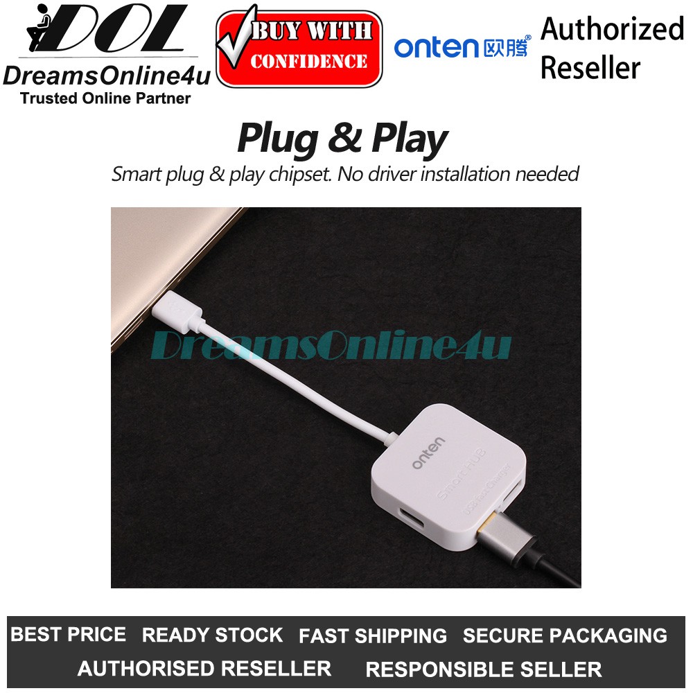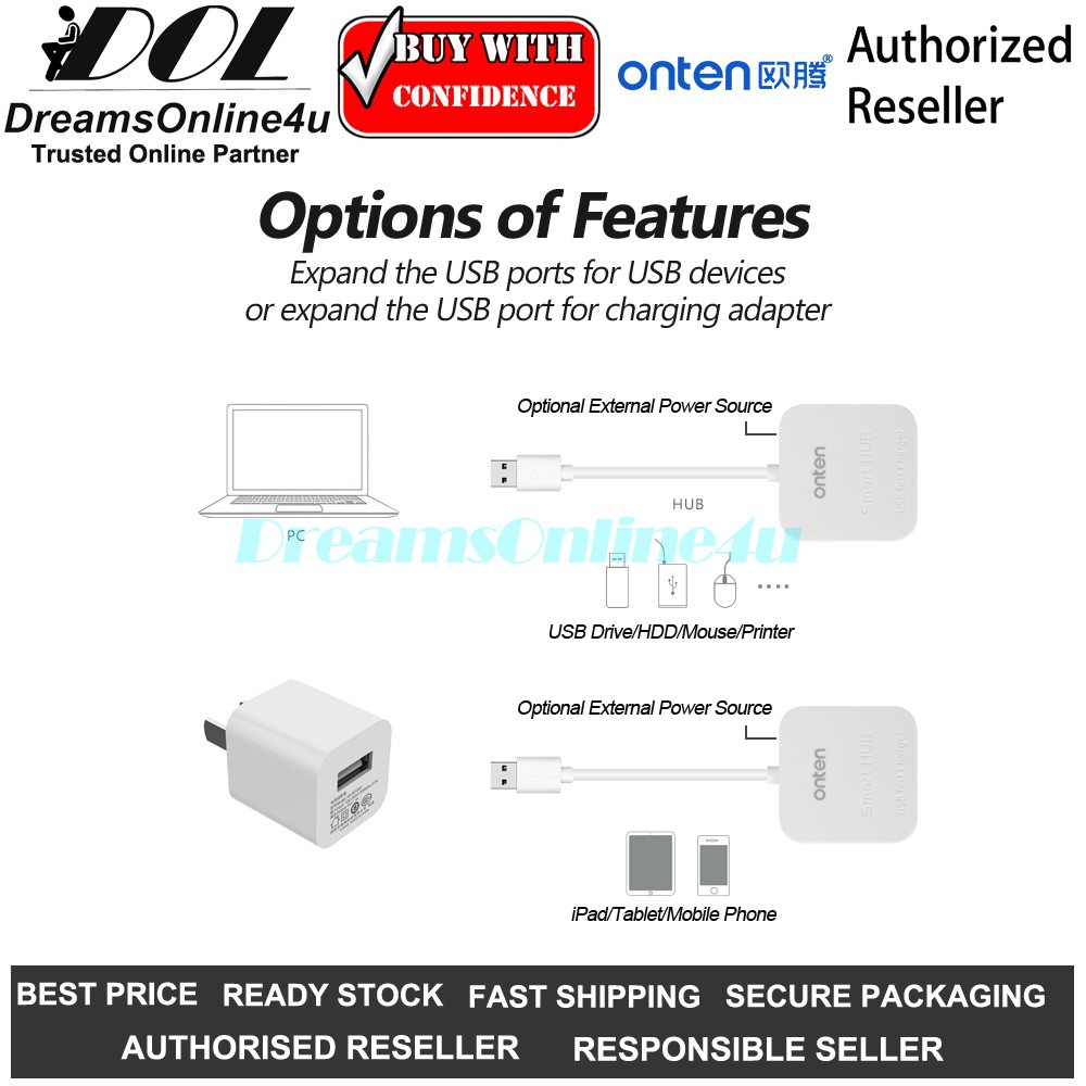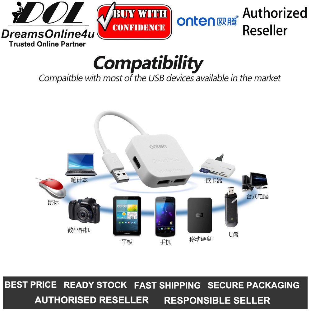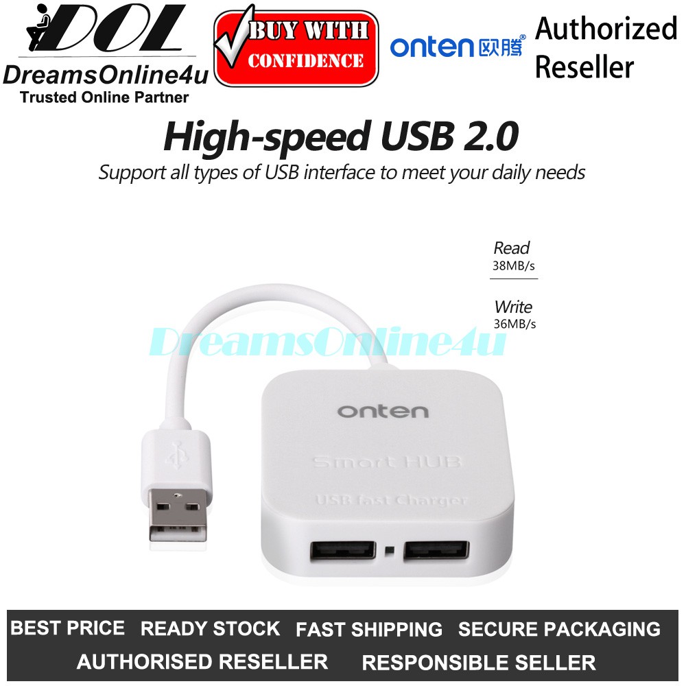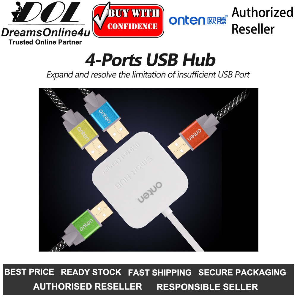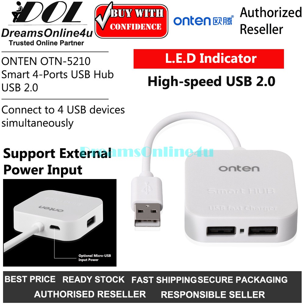 ONTEN OTN-5210 Smart High Speed 4 Port USB Hub 5V 2A for NoteBook Laptop PC