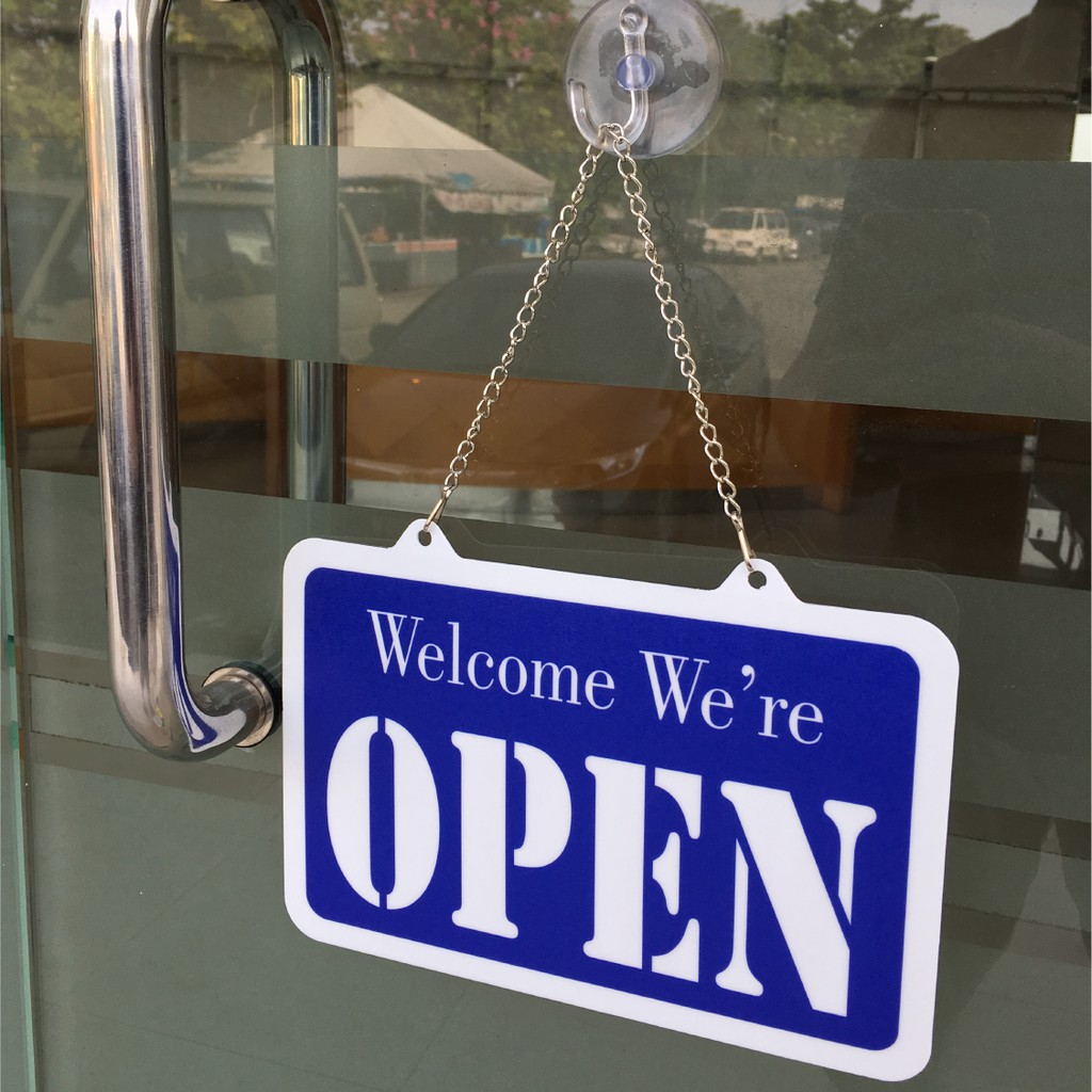 OPEN & CLOSED DOOR SIGN BOARD WITH PLASTIC CHAIN & SUCTION CUP 170 X240MM