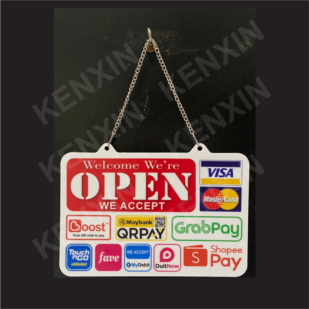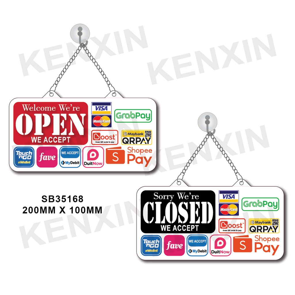 OPEN CLOSED HANGING SIGN BOARD WITH SUCTION CUP 200MM X 100MM, 240MM X 170MM ( WE ACCEPT CUSTOM-MAKE ORDER)