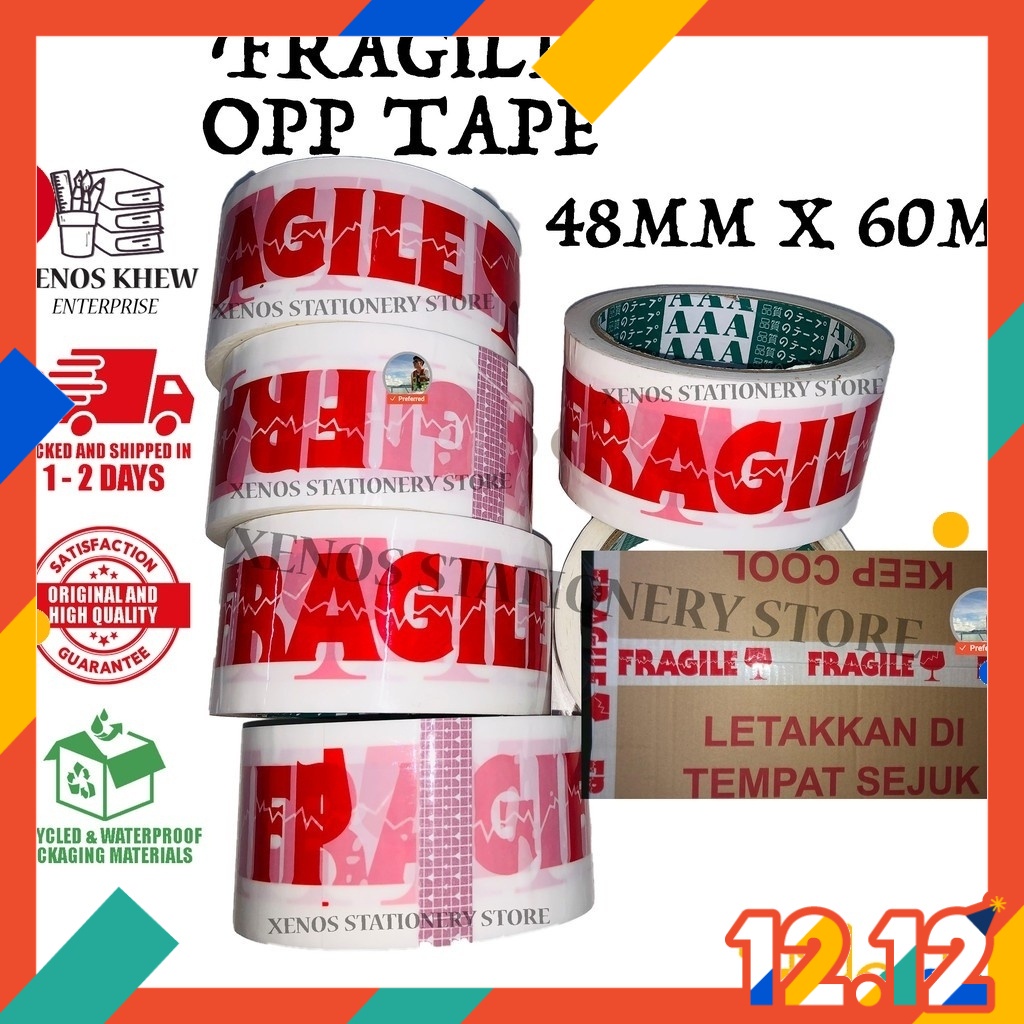 OPP WHITE FRAGILE PRINTED TAPE / FRAGILE OPP TAPE 48MM X 60M / OPP PRINTED FRAGILE TAPE 48MM X 60M [RED / WHITE]