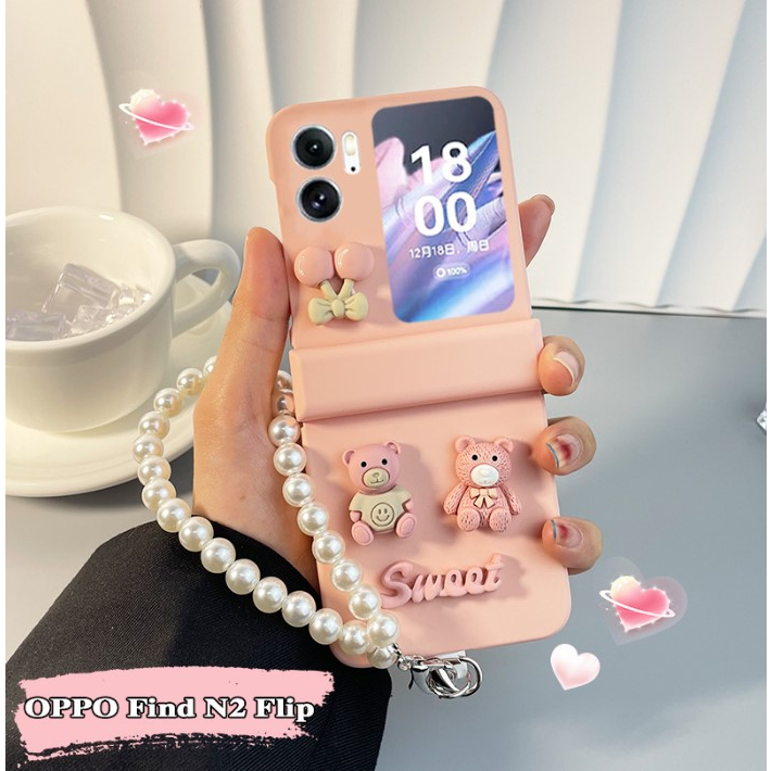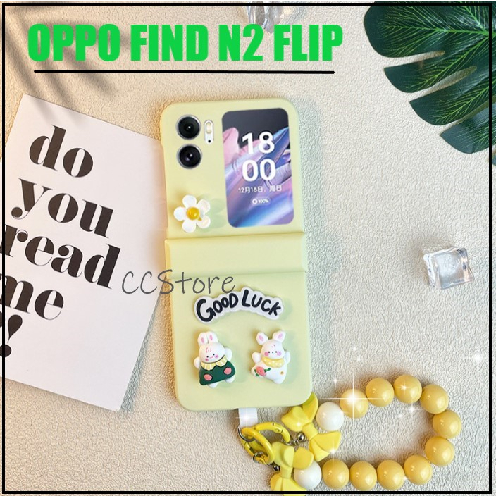 OPPO Find N2 Flip Cute Design Hard PC Casing With Wrist Strap Lanyard Case
