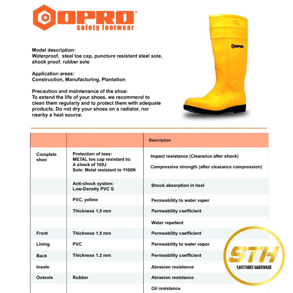 OPRO Steel Toe Cap Yellow Rubber Safety Shoes Opro-100 Wellington Boot Kuning Kasut Getah Boot - Industrial Safety Shoes