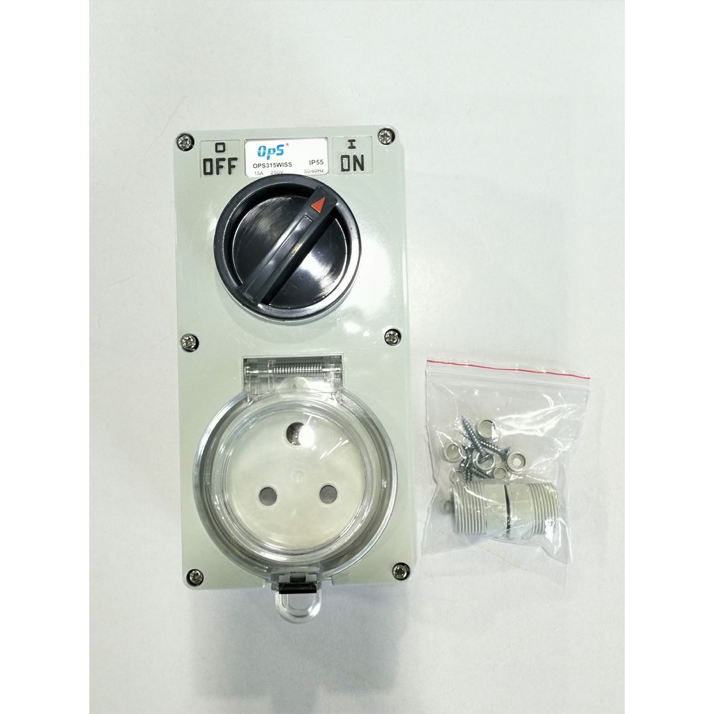 OPS 15AMP Weather Protected 3 Pin Combination Isolator Switch Socket