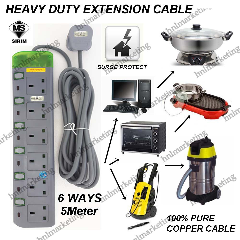 OPS 6 WAY HEAVY DUTY EXTENSION TRAILING SOCKET 5M
