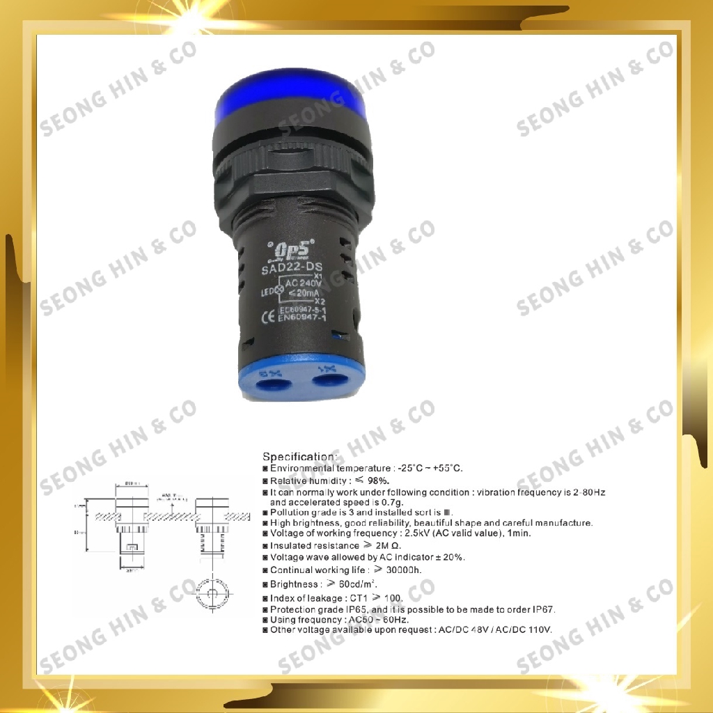 OPS AC/DC 240V LED Indicator Lamp / Pilot Lamp RED YELLOW BLUE GREEN
