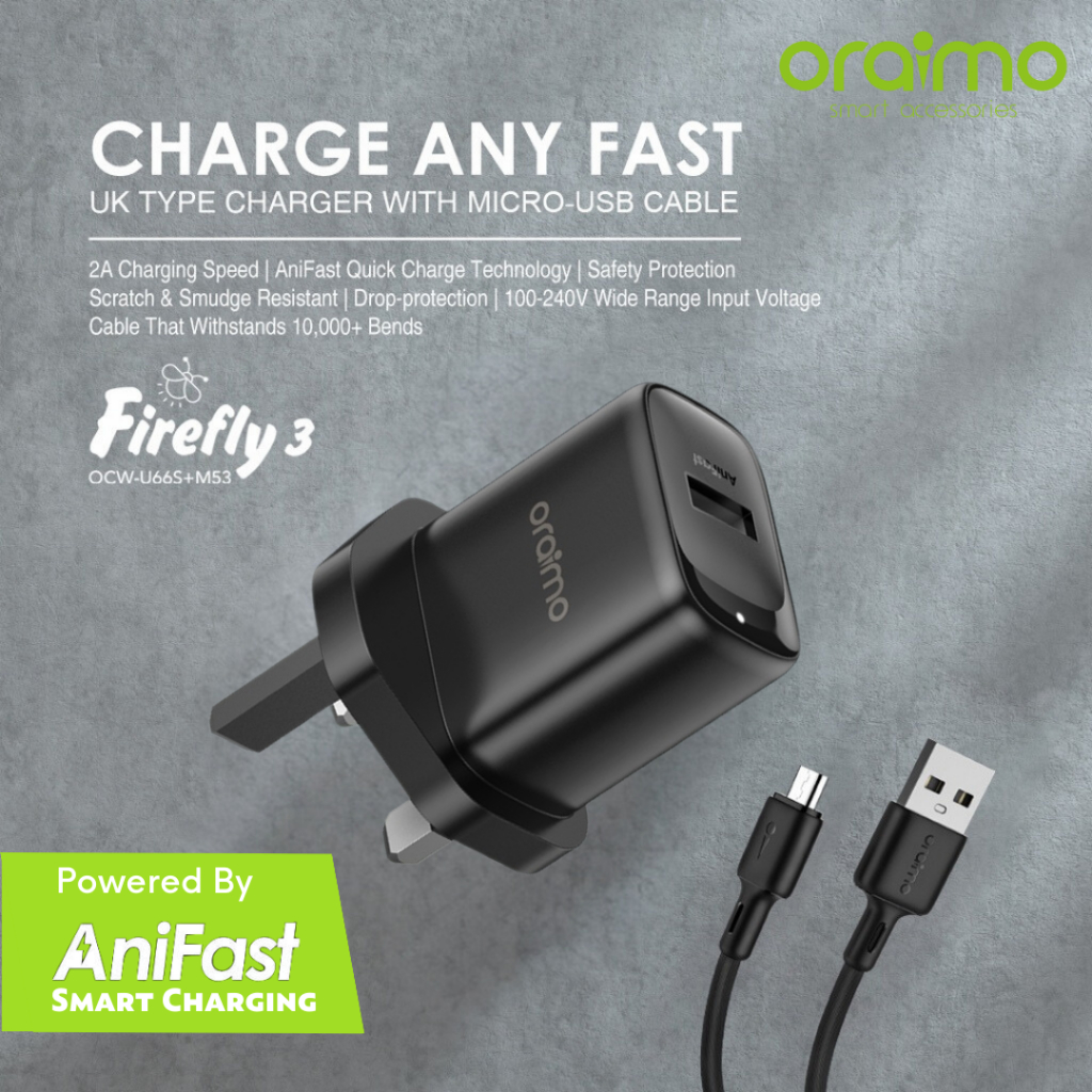 ORAIMO Charger Adapter Charger Android Fast Charging Adapter Fast Charging 2A Plug USB Charger Phone Chargers SOU66S