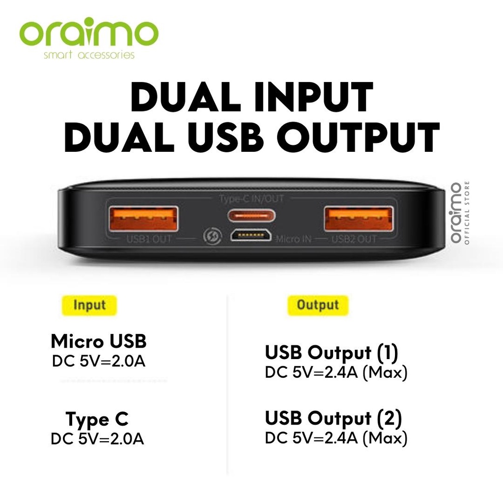 ORAIMO Powerbank 10000mAh Powerbank Slim Powerbank Type C Input 2.4A Type C Powerbank Portable Powerbank PD OPB-P120D