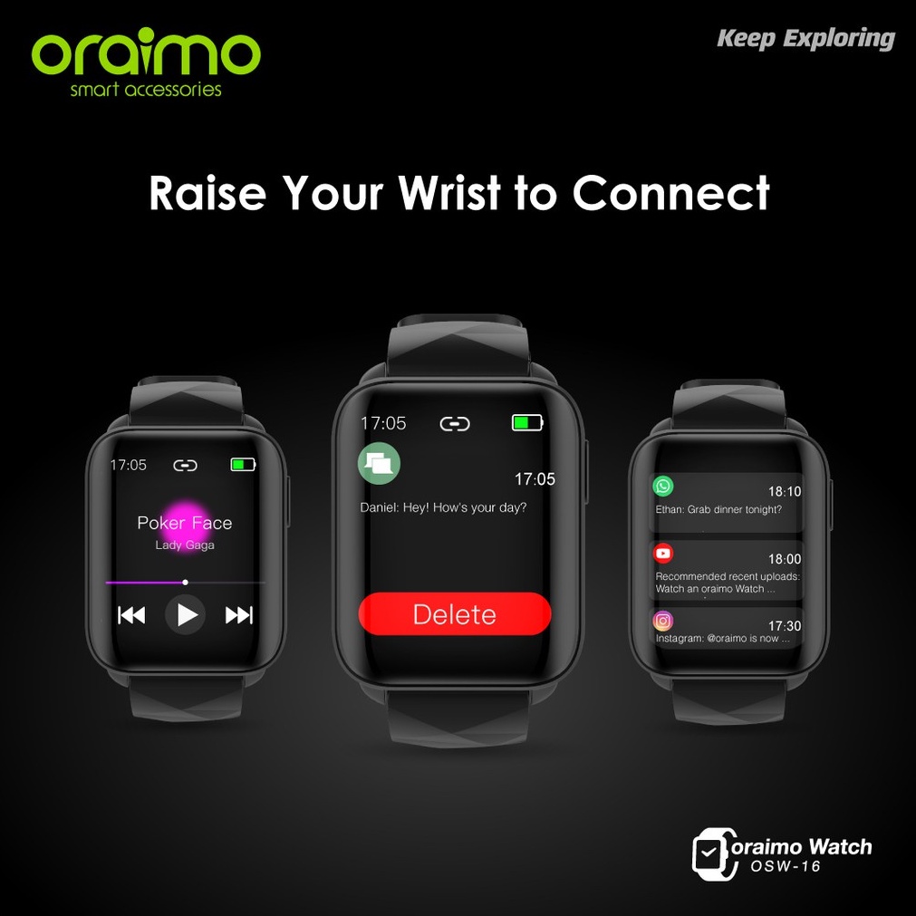 ORAIMO Smartwatch Waterproof IP68 Smartwatch Bluetooth OSW-16 Jam Smartwatch Android Watches Jam Tangan Pintar Iwatch