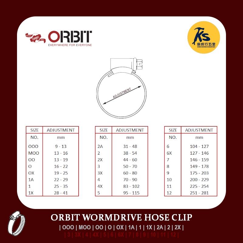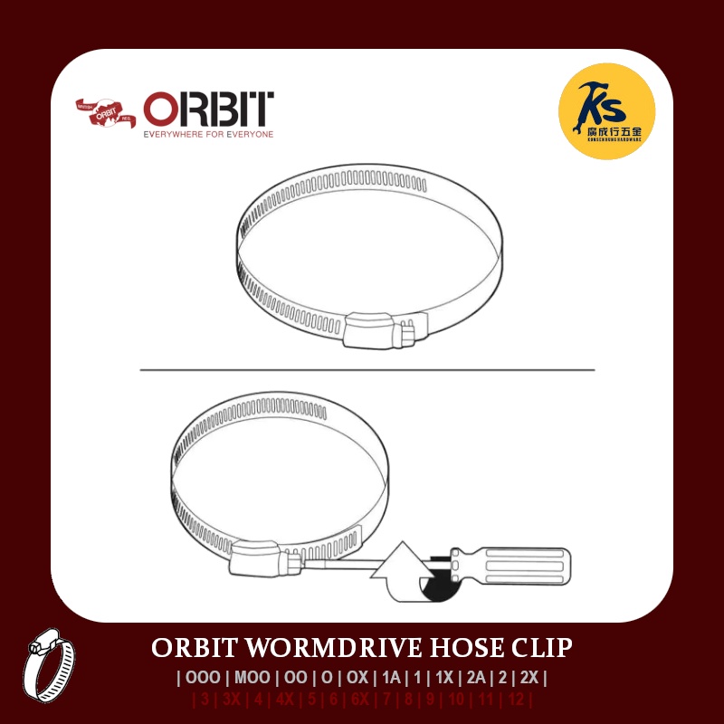 ORBIT Wormdrive Hose Clip ( OOO | MOO | OO | O | OX | 1A | 1 | 1X | 2A | 2 | 2X )