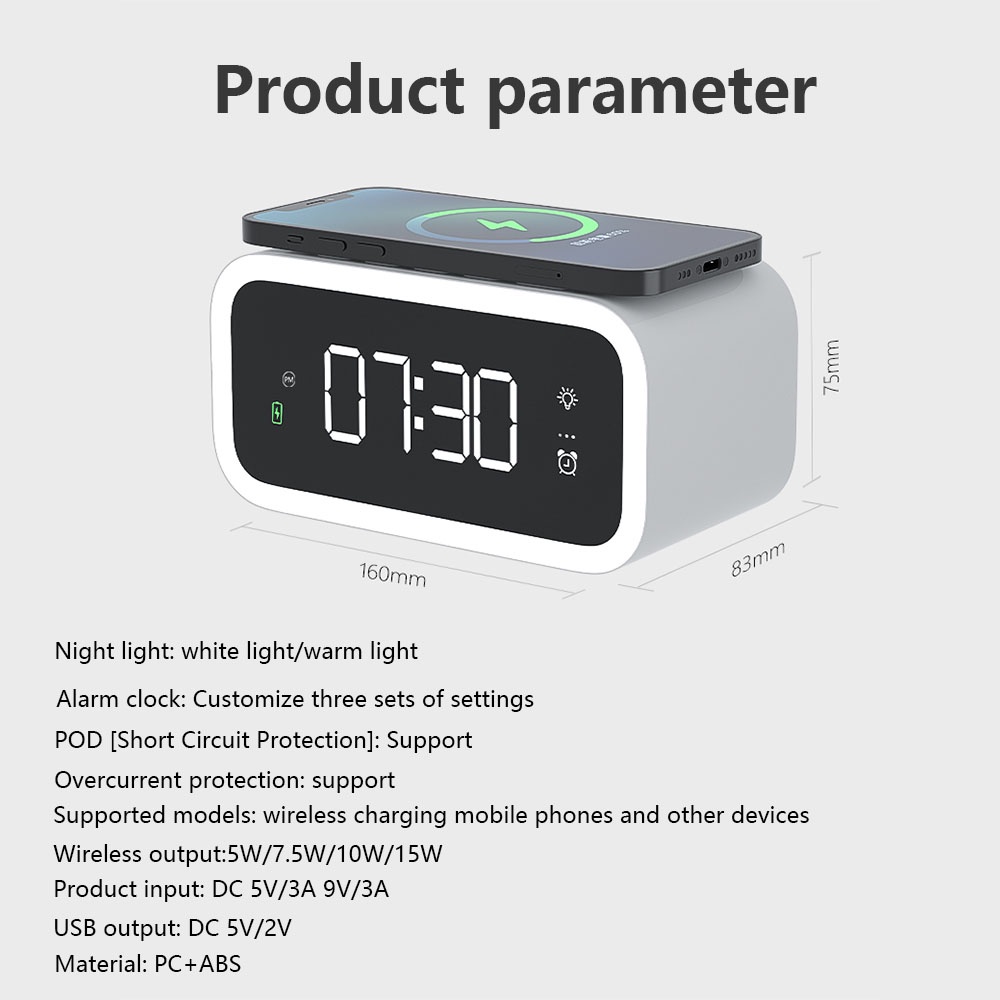 ORIA Full Screen LED Digital Alarm Clock With 24/12H Format/Support Wireless Charger for Mobile Phones And Other Electronic Devices