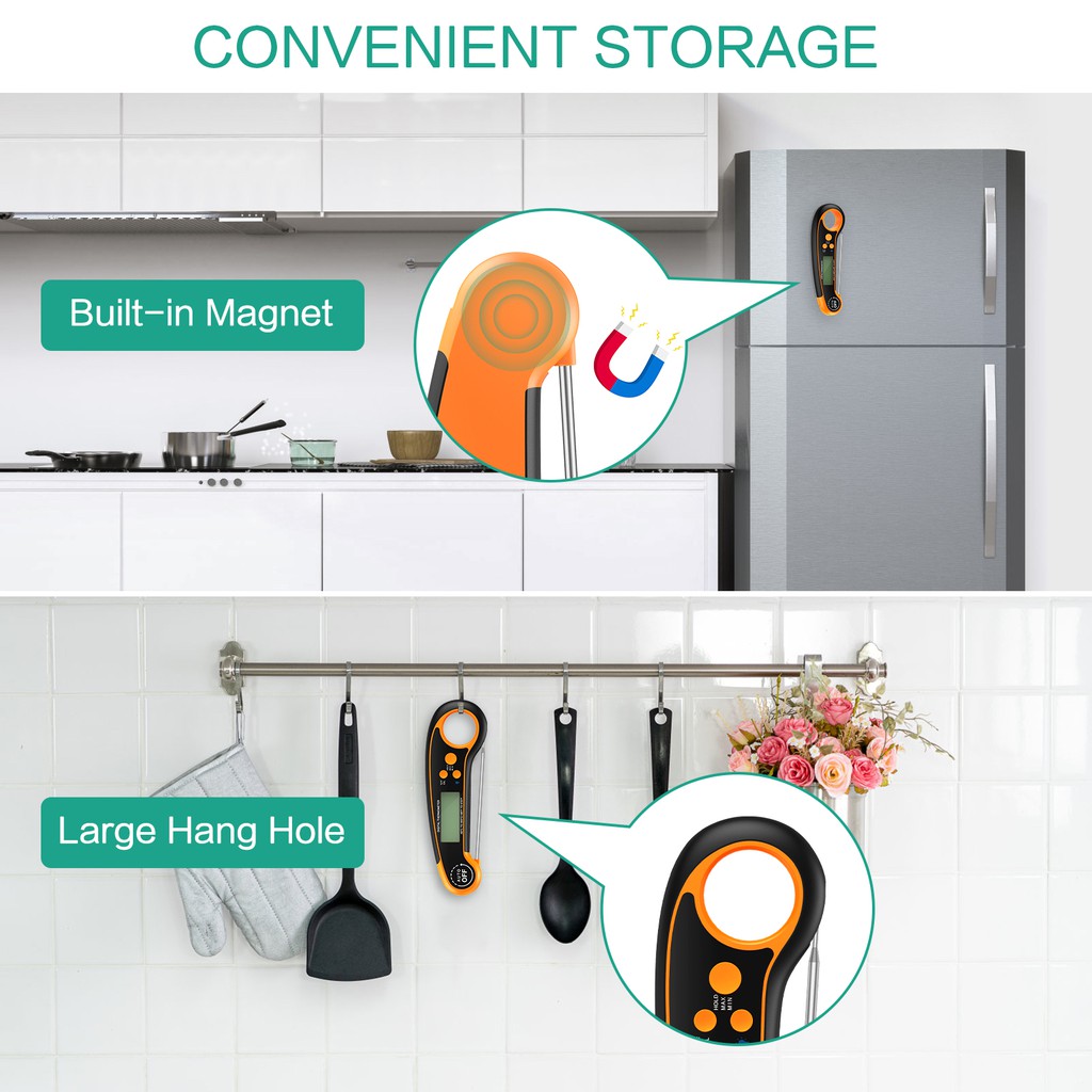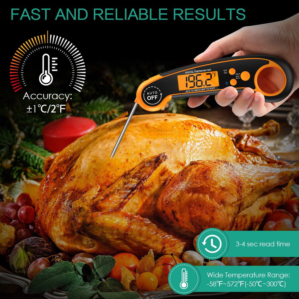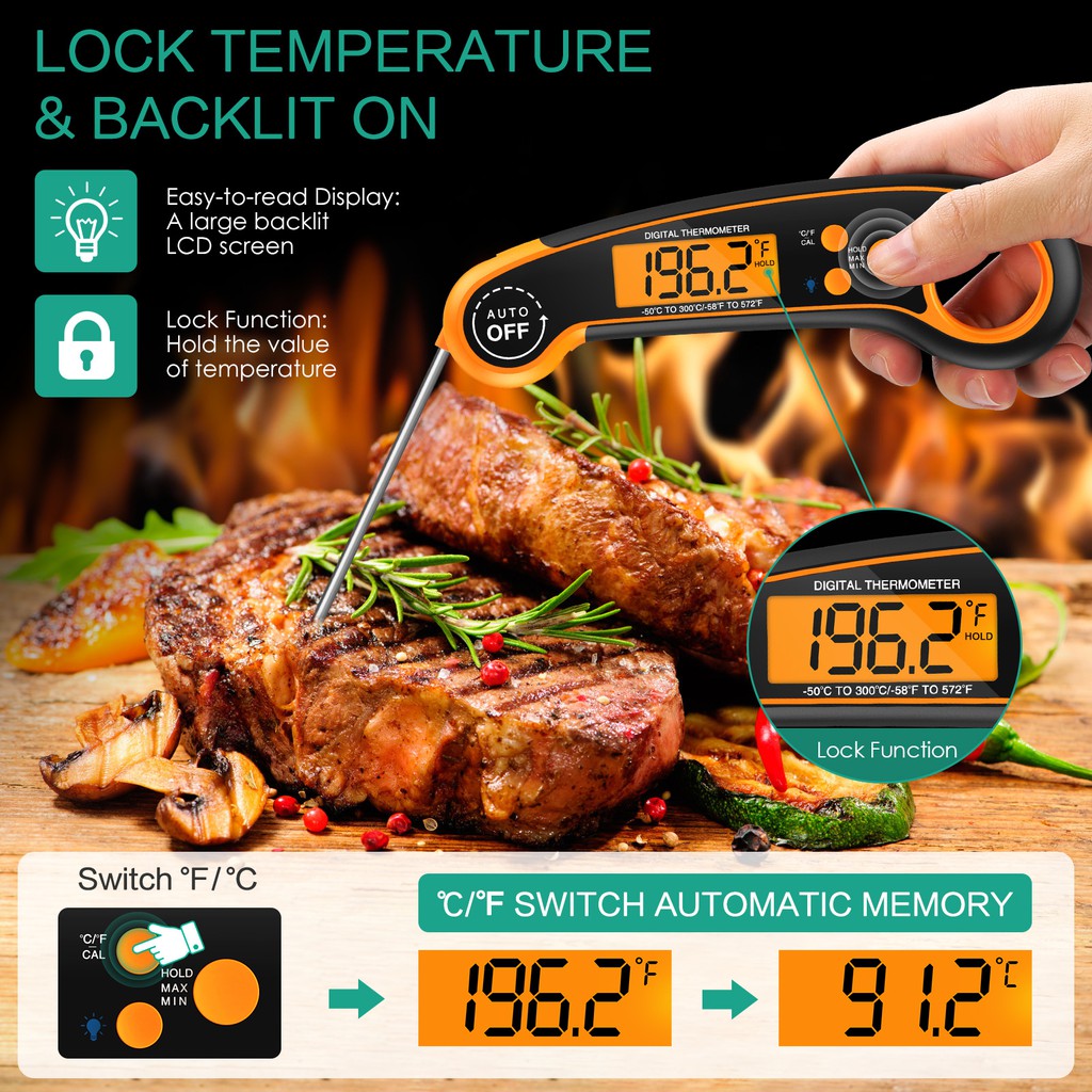 ORIA Waterproof Kitchen Meat Thermometer with Backlight LCD Screen for BBQ