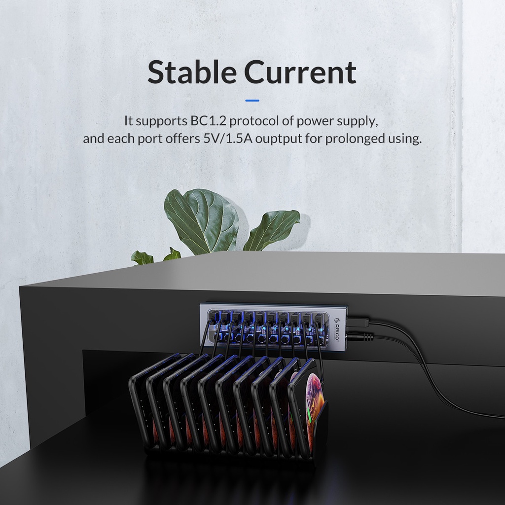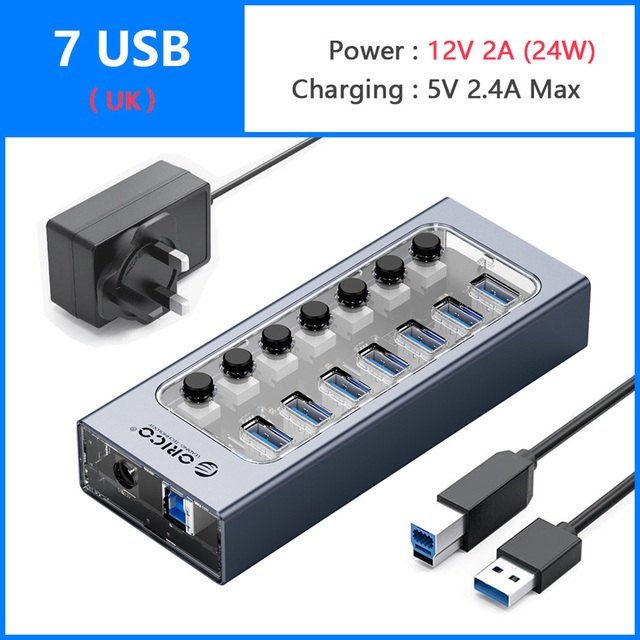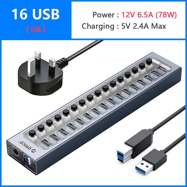 ORICO USB Hub with Power Adapter Industrial Hub USB 3.0 7/10/13/16 Ports(AT2U3)
