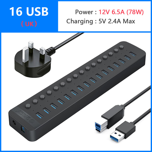 ORICO USB Hub with Power Adapter USB3.0 HUB 7Ports ABS USB OTG Splitter On/Off Switch With 12V Power Adapter Support Charger For Computer